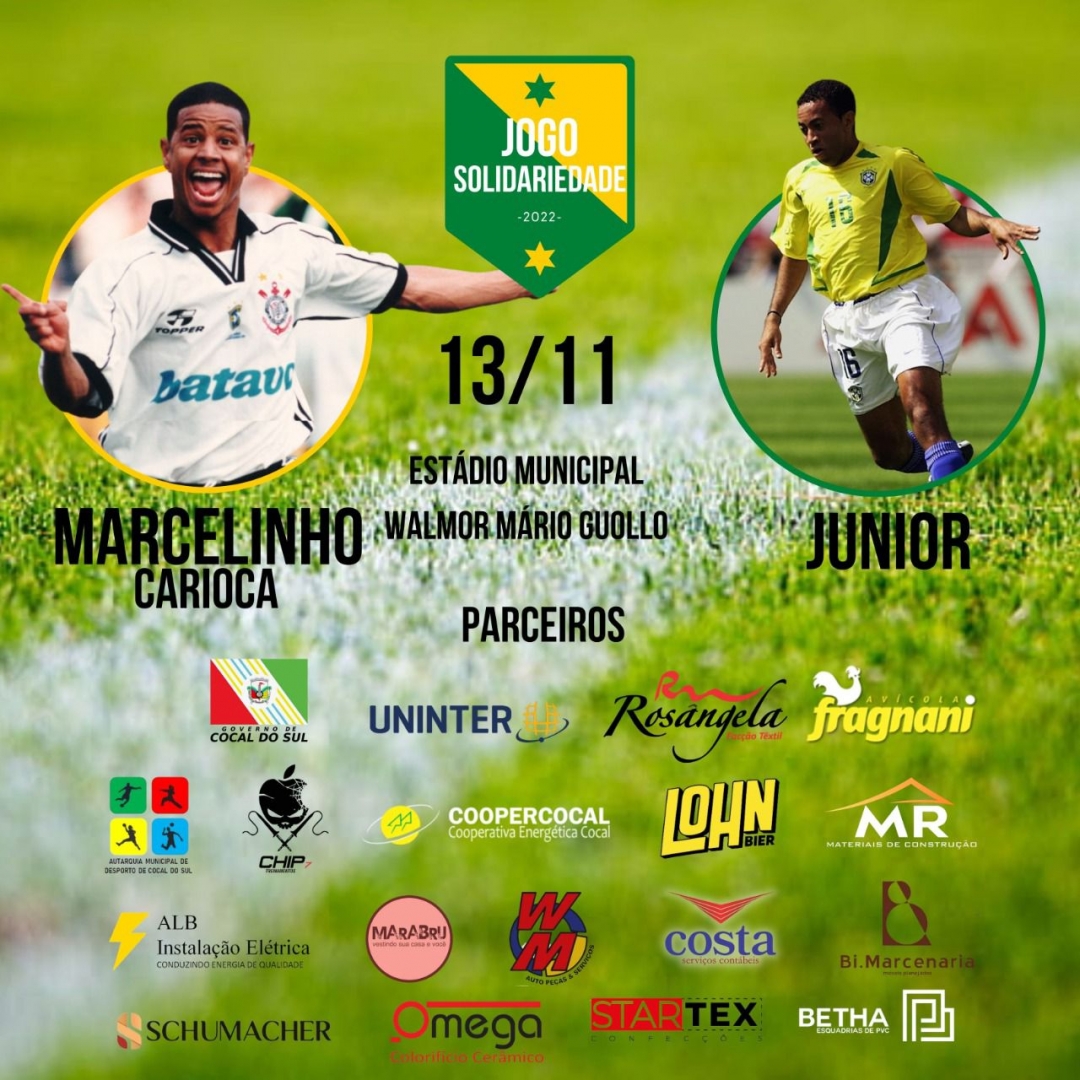 Evento consolidado em Cocal do Sul, o Jogo Solidário já tem data marcada para acontecer: será no dia 13 de novembro, às 10h, no estádio municipal. O evento é aberto ao público e para a entrada é preciso levar 1kg de alimento não perecível. Este jogo será alusivo à Copa do Mundo, que acontece no Qatar. Dessa forma, estão sendo vendendo kits para os que quiserem jogar com os craques Marcelinho Carioca e Junior, além de poder participar de um almoço logo depois.