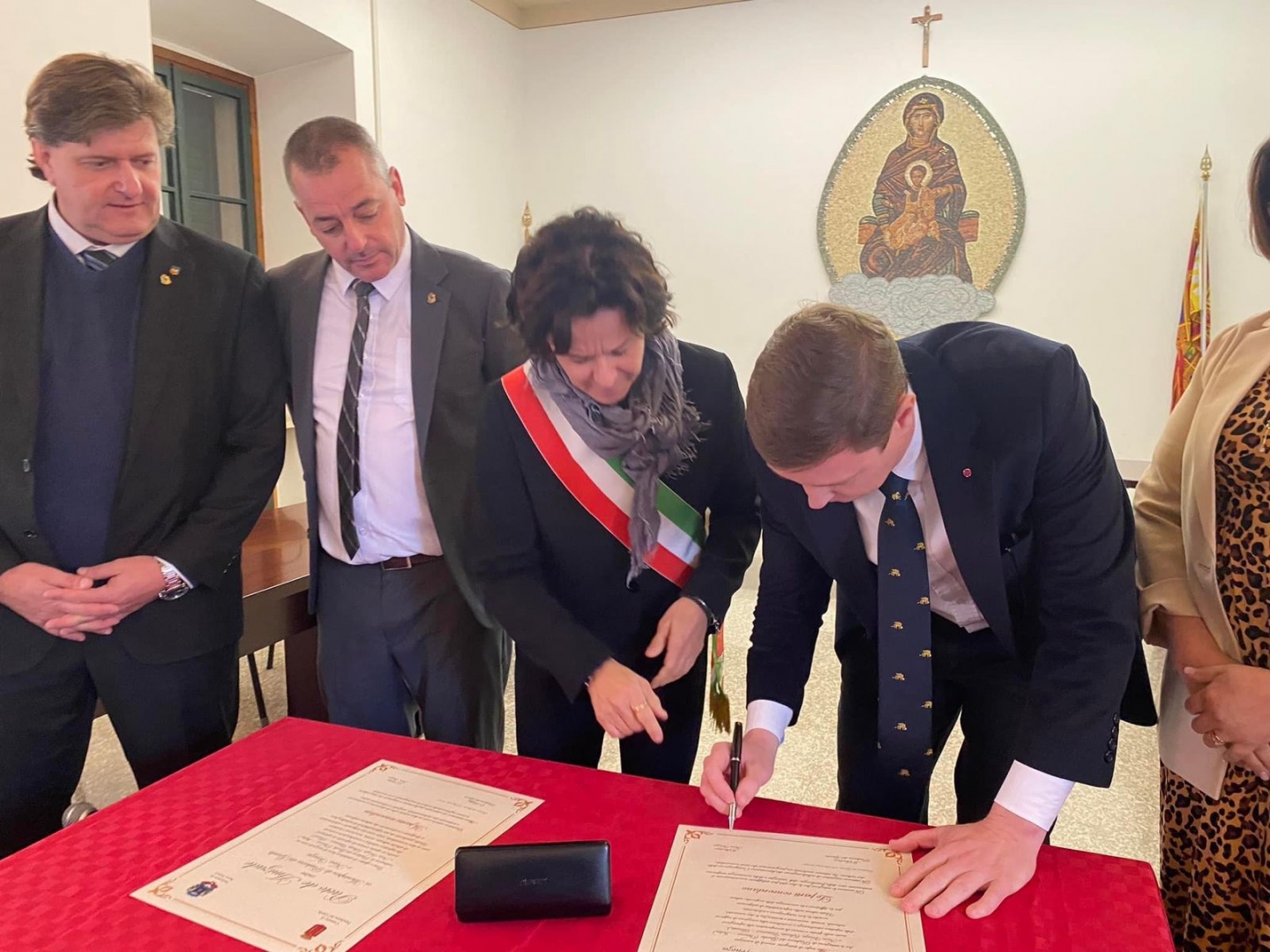 Na ocasião, os parlamentares entregaram um ofício encaminhado pelo deputado estadual Vicente Caropreso (PSDB) com intuito de estreitar o relacionamento entre os estados de Santa Catarina, no Brasil, e do Veneto, na Itália.