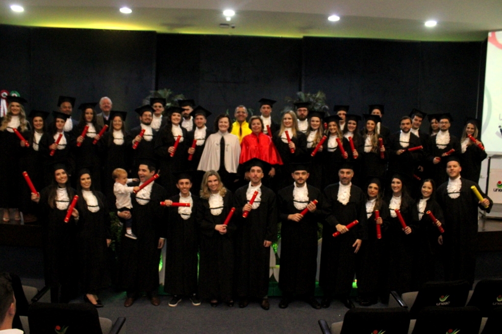 A representante da gestão da Universidade finalizou com os votos de sucesso no novo caminho que está por vir. “Estamos aqui, porque vocês escolheram esta Universidade Comunitária para a sua formação. Desejamos que continuem por aqui: temos especialização, mestrado, doutorado. Desejo que sigam seus sonhos, seus propósitos. Se vai ser fácil? Acredito que não. Precisamos de desafios, para que possamos exercitar o que aprendemos. Que a caminhada seja bem aproveitada, pois o trajeto é a própria vida”, concluiu a presidente da solenidade.