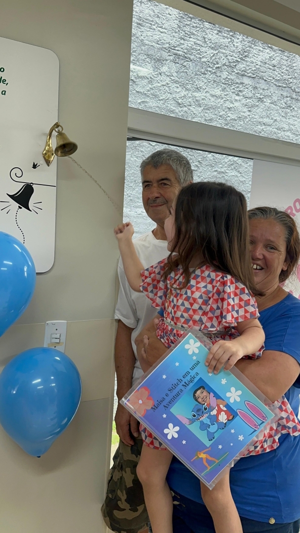 Com o simbólico toque do sino, Maisa celebrou essa grande vitória junto de seus familiares, equipes do setor de Radioterapia do Hospital São José e Casa Guido. A menina, de apenas quatro anos de idade, recebeu uma verdadeira festa com direito a balões, cartazes, presentes e até um livro feito especialmente para ela com imagens do Stitch.