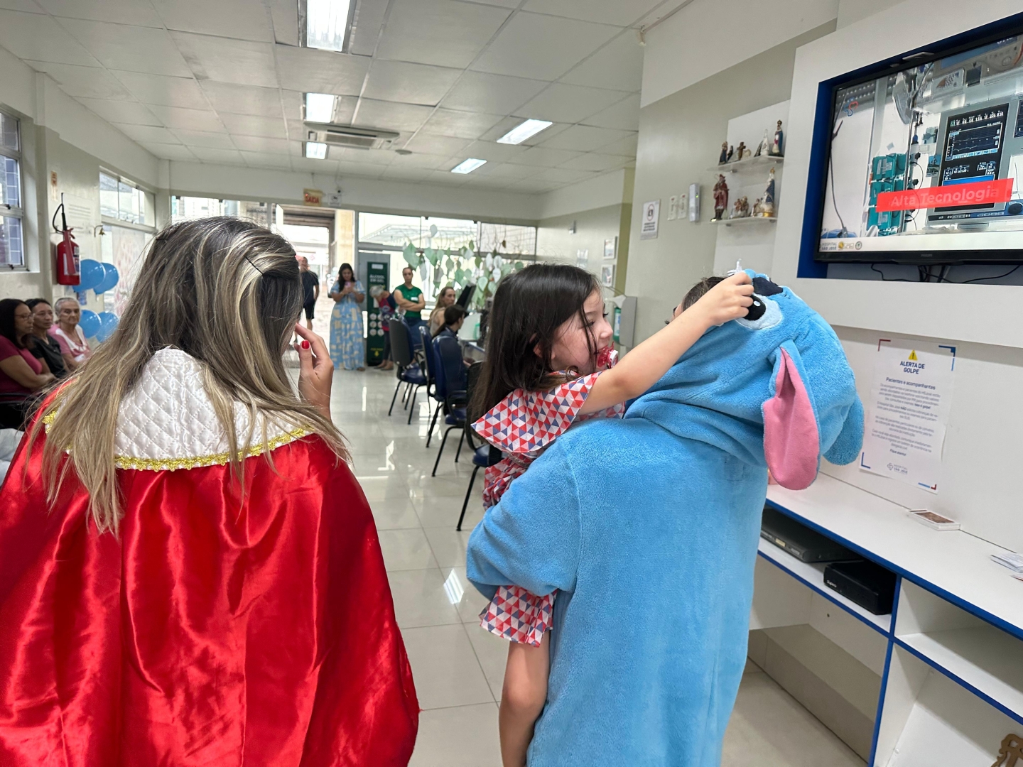 Criança de quatro anos conclui tratamento de radioterapia e ganha festa com o tema do personagem Sti