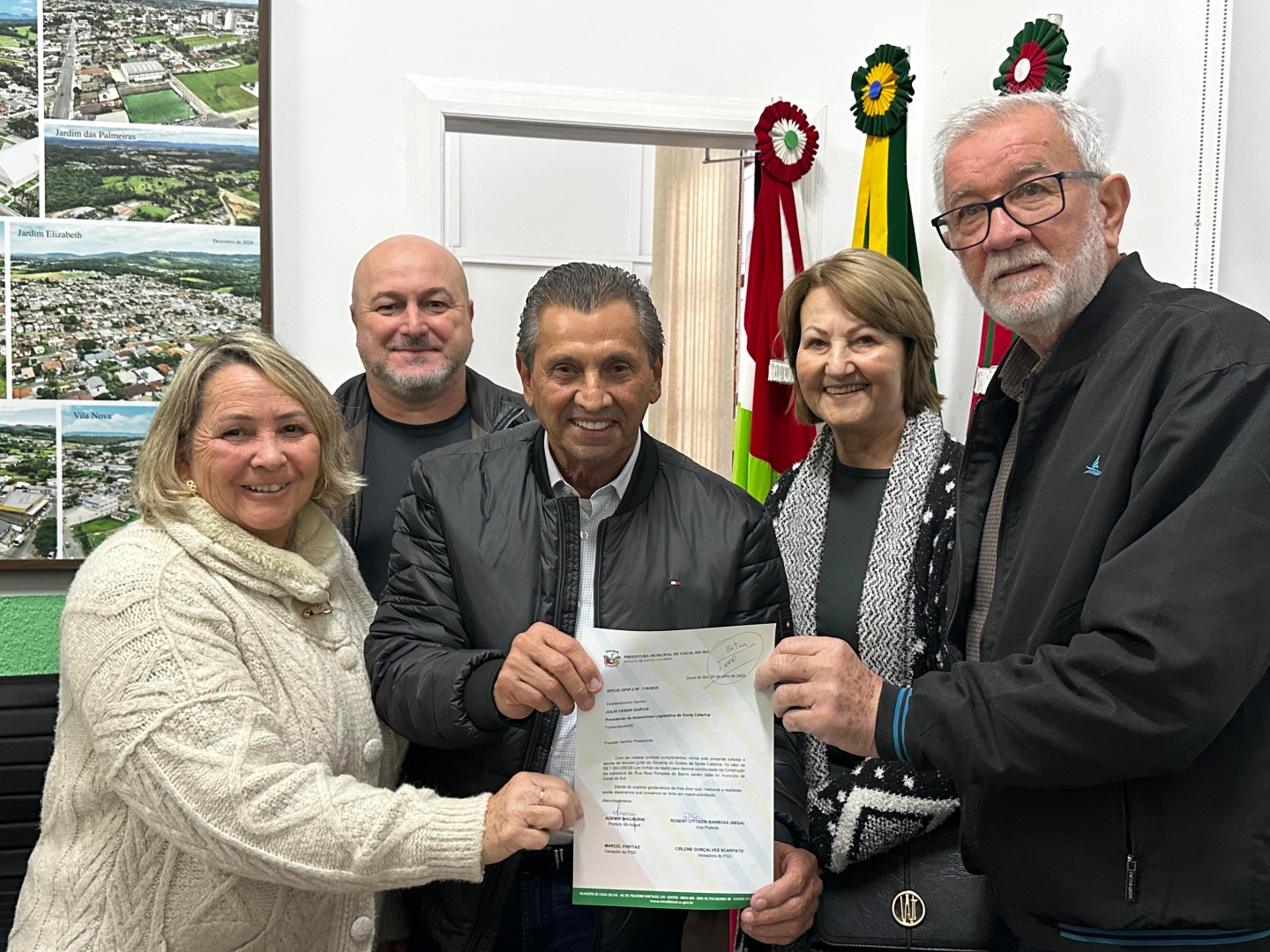 A entrega aconteceu no gabinete do prefeito Ademir Magagnin e foi prestigiada por autoridades, comunidade e, principalmente, pelos próprios beneficiários.