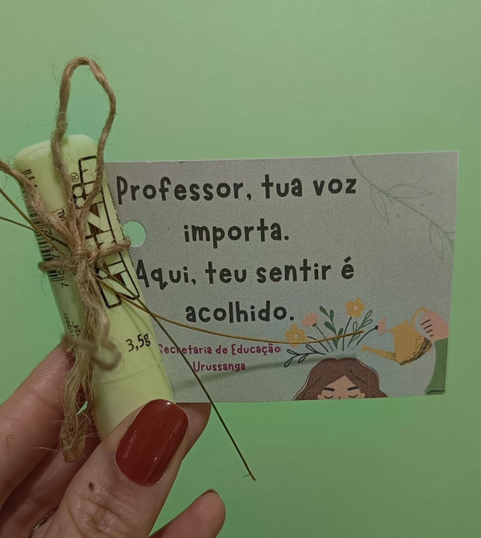 A saúde emocional dos profissionais da educação tem recebido atenção especial em Urussanga. O Governo Municipal, por meio da Secretaria de Educação, criou um grupo de apoio chamado "Eu te escuto, Professor!", uma iniciativa que visa oferecer um espaço seguro e acolhedor para os professores do ensino infantil e fundamental, permitindo que eles compartilhem suas experiências, emoções, preocupações e dificuldades de forma aberta e respeitosa.