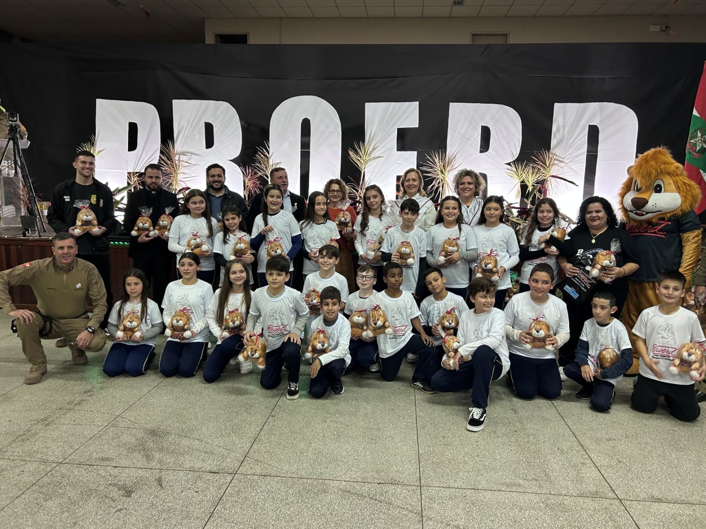 Com alegria e sentimento de dever cumprido, 250 crianças participaram da formatura do Programa Educacional de Resistência às Drogas e à Violência (Proerd), realizada na noite de quinta-feira, dia 10, em Urussanga. Desenvolvido pela Polícia Militar, o programa atendeu 12 turmas do 5º ano do ensino fundamental das redes municipal, estadual e particular, oferecendo orientações sobre como se manter longe das drogas e da violência.