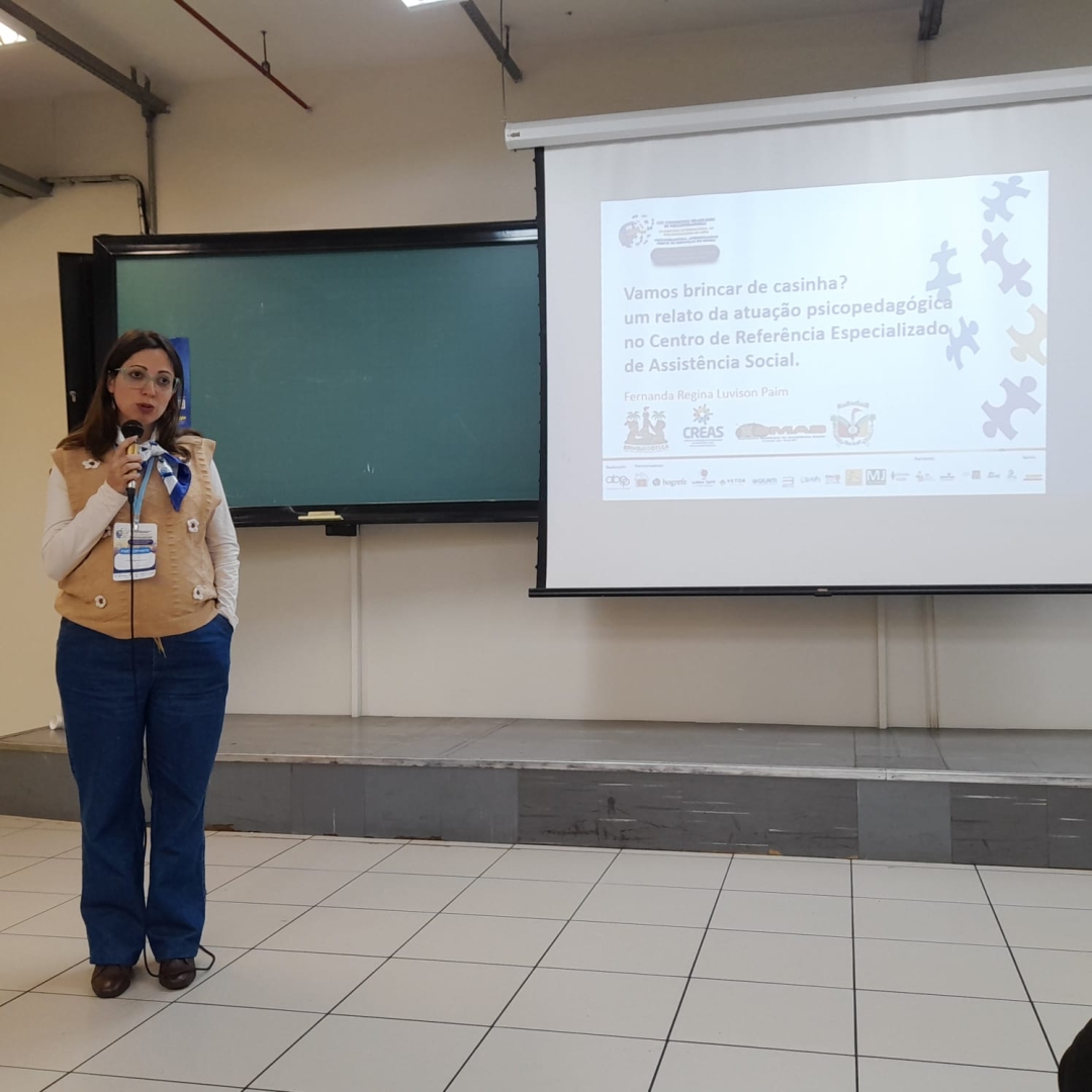 A experiência da Brinquedoteca do CREAS de Cocal do Sul ganhou projeção nacional e se tornou exemplo entre profissionais da área da infância e adolescência. A pedagoga Fernanda Paim representou o município no maior congresso de Psicopedagogia do Brasil, apresentando uma comunicação oral que destacou o espaço lúdico como ferramenta de fortalecimento de vínculos e desenvolvimento de crianças e adolescentes atendidos pela Assistência Social.