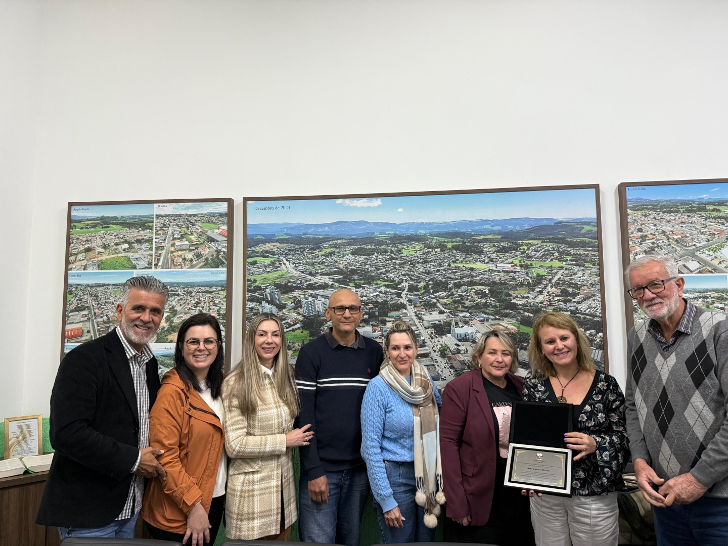 O reconhecimento aconteceu no gabinete do prefeito e reuniu gratidão e emoção em torno da trajetória marcada por ética, esforço e comprometimento. Na homenagem entregue à professora, foi lembrado que o trabalho desenvolvido por ela contribuiu direto para os resultados de excelência alcançados pela Educação de Cocal do Sul.