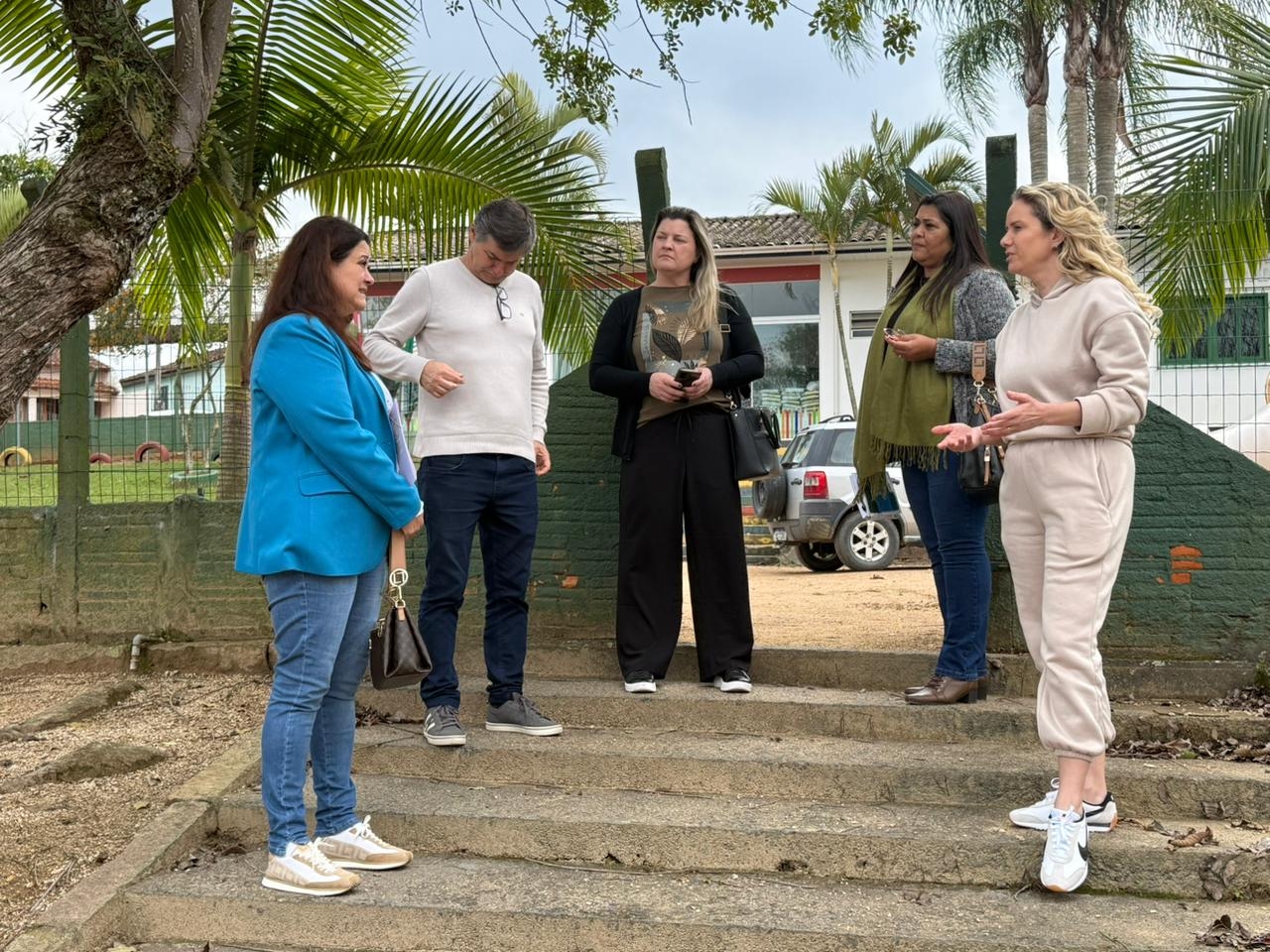 Uma comitiva de Siderópolis esteve no município para conhecer o projeto e avaliar a possibilidade de implantar iniciativa semelhante. A visita contou com a presença da vereadora Jadna de Cássia Rodrigues Martins, da coordenadora pedagógica Janaína Ghisi, da coordenadora do ensino fundamental Denise Nunes e do secretário de Educação Meck Rossa.
