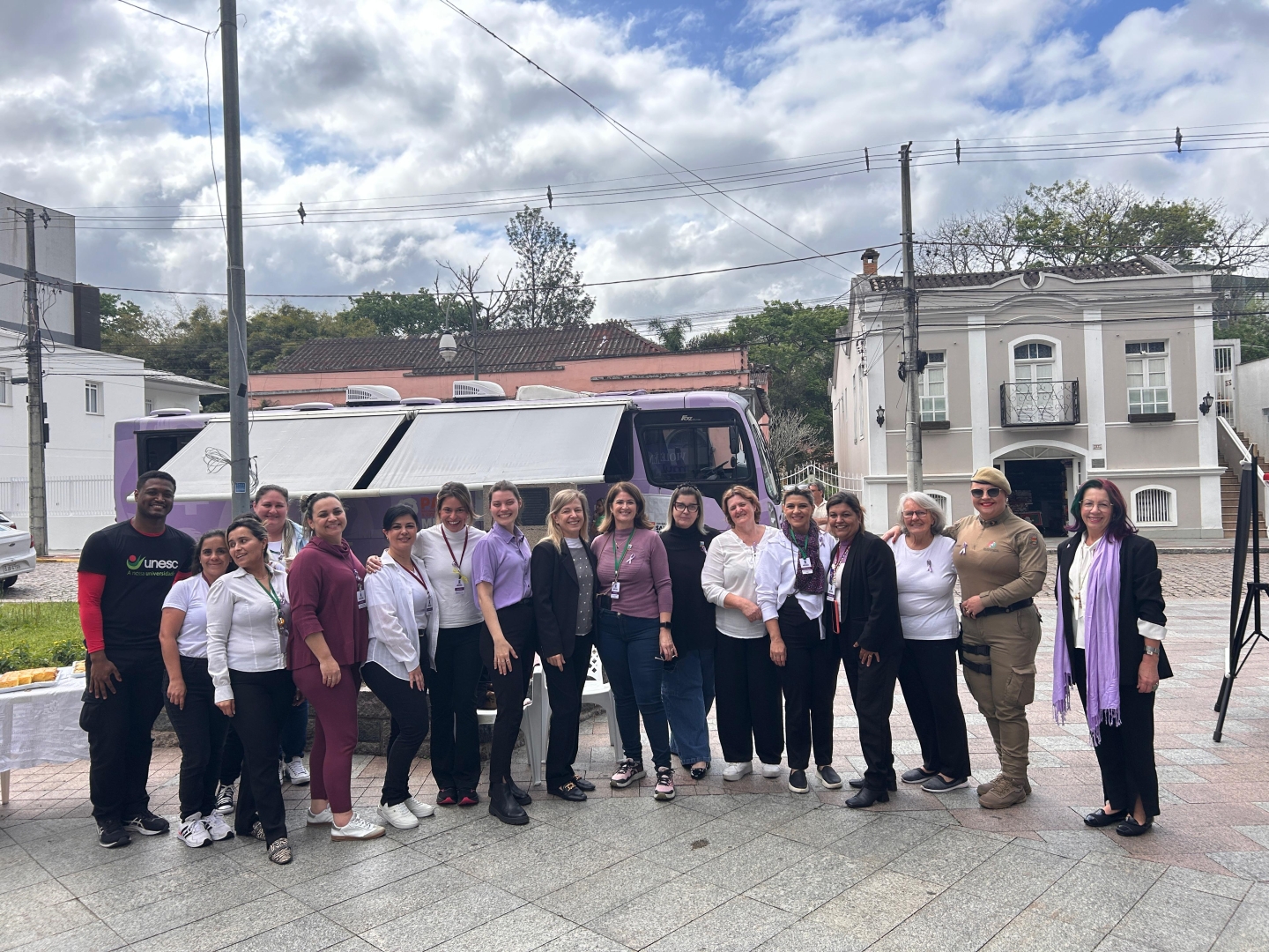 A presença do veículo reforça a conscientização e combate à violência contra a mulher.