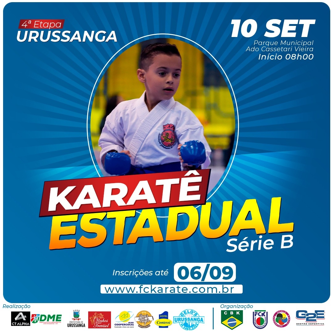 Neste sábado (10), a Praça D'Itália, no Parque Municipal Ado Cassetari Vieira, em Urussanga, será palco de uma grande competição. A partir das 8h, mais de 500 atletas de toda Santa Catarina, são esperados na 4° etapa do Campeonato Estadual de Karatê - série B.