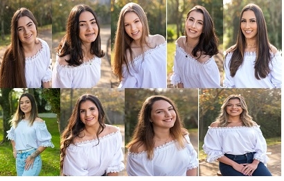 As nove candidatas são: Amanda Cruz Jumes (representa o bairro Saturno); Amanda Pereira Pravatto (representa a Associação Clube de Mães e a Escola de Educação Básica Waldemar Casagrande); Edna Savi Schmitz (representa a rádio Onda Jovem), Júlia Pereira Elias (representa a Loja Tim e o Suelen Deula Beauty; Lidiana Machado Félix (representa a Saint Bier e o Ateliê Of Beauty Studio); Luana Borges Antonio (representa a Loja Advam); Natieli Costa Albano (representa a Loja Adria e CEJA); Nicoli Arantes Westrupp (representa o bairro São Gabriel e Tifhany Santana do Nascimento (representa o Salão de Beleza M e S.