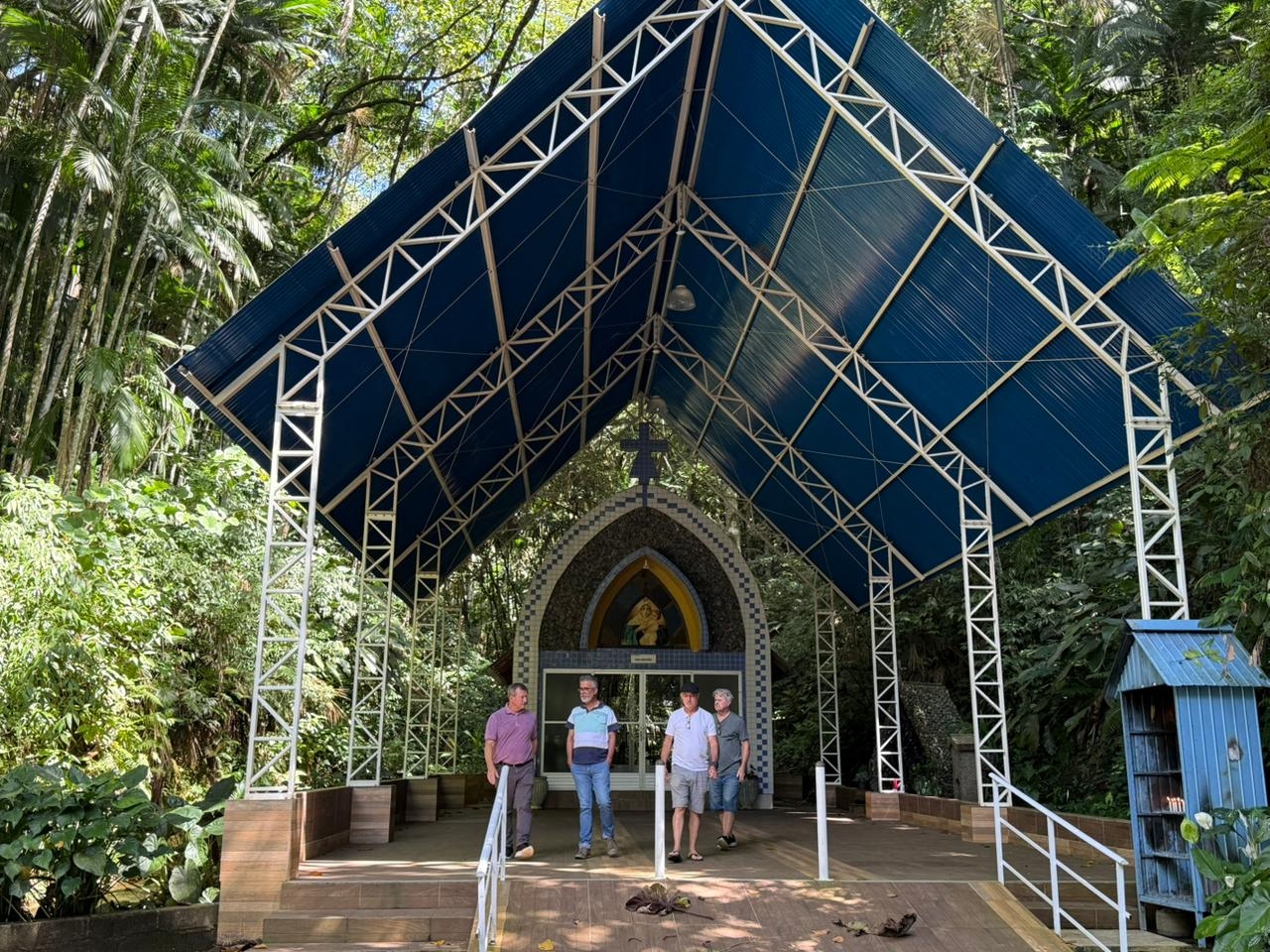 O turismo religioso também ganhou destaque no roteiro. Além da Gruta da Mãe Peregrina, que conta com vias-sacras e 12 estações e já é um ponto consolidado de visitação, o grupo incluiu no mapeamento as capelas das comunidades de Rio Comprudente, Rio Galo, Rio Perso, Ferreira Pontes, Jardim Itália e Jardim Elizabeth, além da Igreja Matriz do município e do Santo Sudário, ampliando a visão para a criação de um circuito religioso integrado.