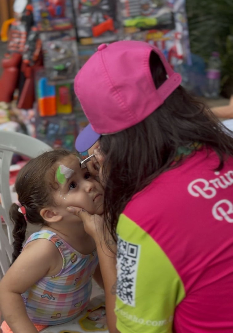 O evento reuniu famílias com brinquedos para as crianças e marchinhas de carnaval no coreto da Praça.