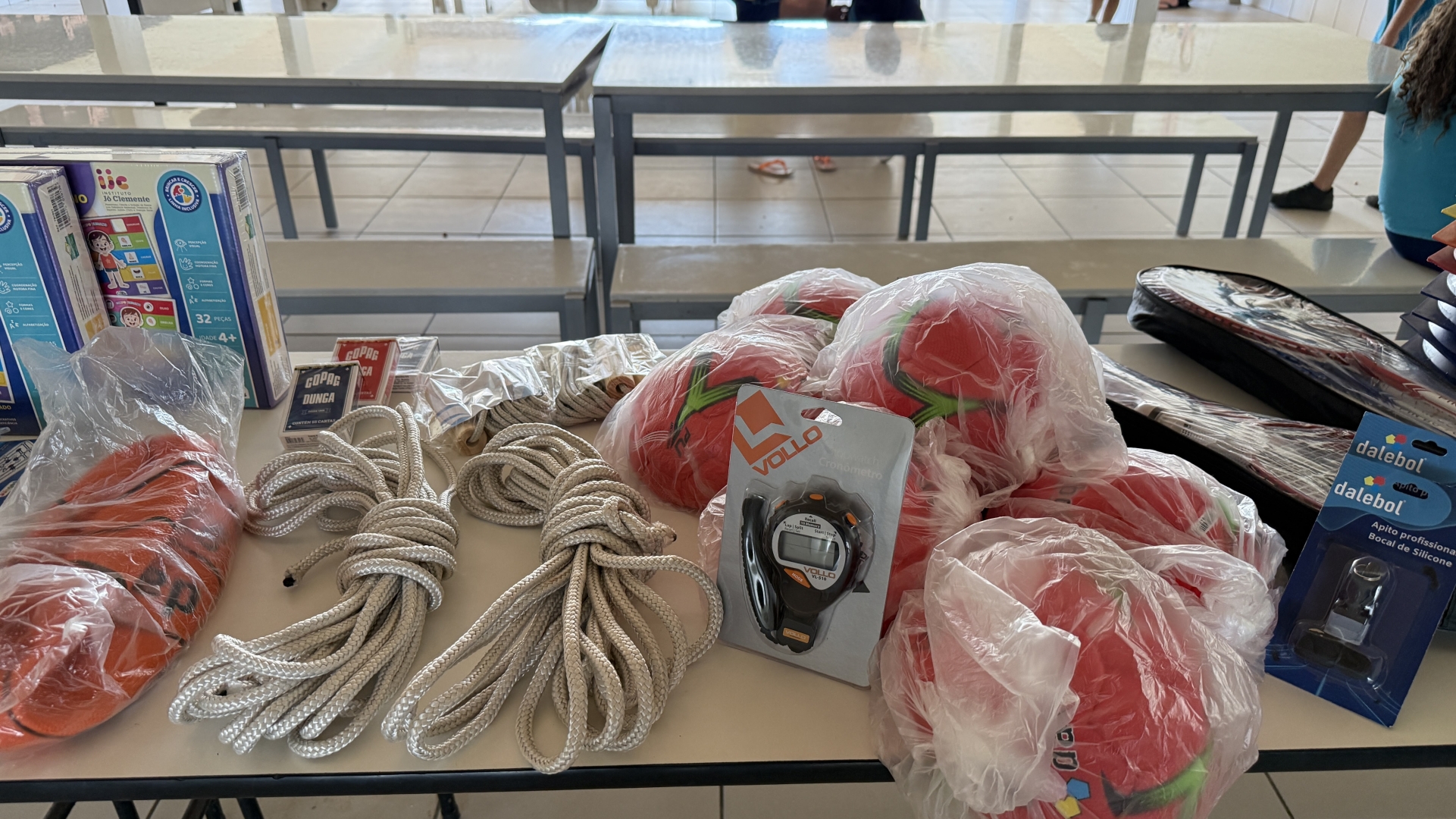 Entre os equipamentos adquiridos estão bolas de futebol, futsal, voleibol, basquete, handebol, de borracha em tamanhos variados, de tênis de mesa e frisbee; raquetes de frescobol, tênis de mesa e badminton; circuitos de psicomotricidade, blocos de montagem, quebra-cabeça, bingo, torre de madeira, pega varetas, cordas de pular, bambolês, skates com kits de proteção e cones coloridos; kit de bolas de bocha, redes de voleibol e de tênis de mesa.