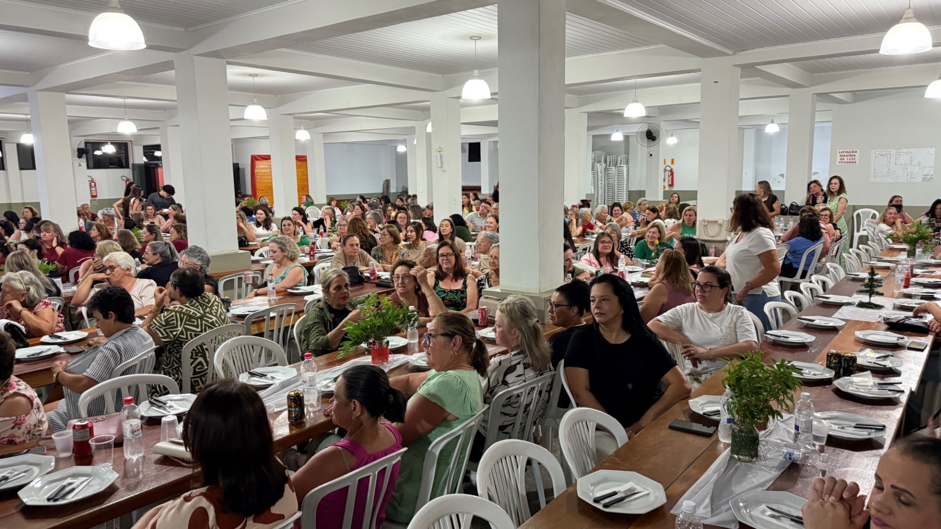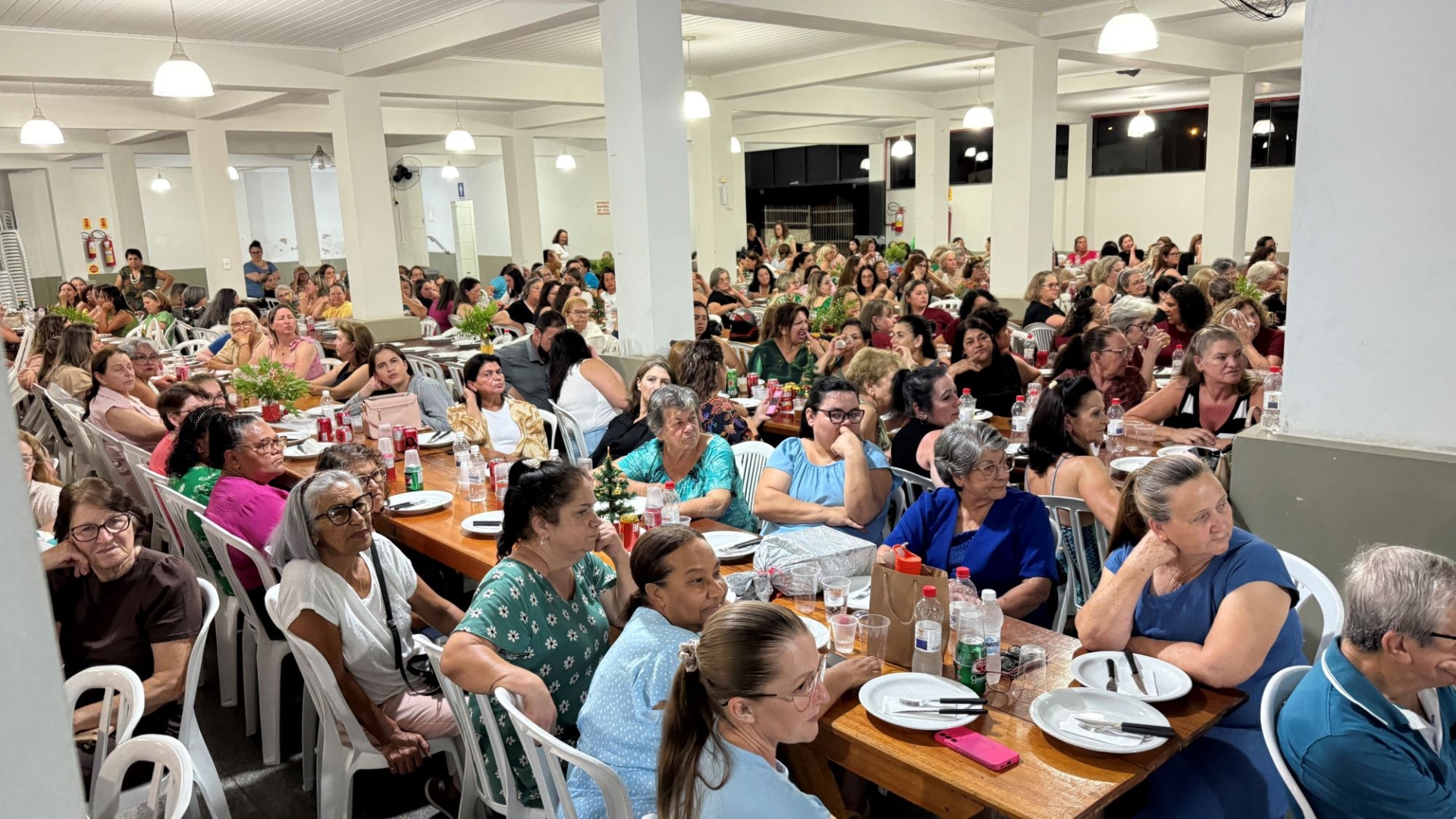 Os 22 grupos de Clubes de Mães de Morro da Fumaça estiveram reunidos na última sexta-feira, 5 de dezembro, para celebrar as atividades promovidas em 2025. A celebração reuniu cerca de 320 mulheres em um encontro marcado pela gratidão, alegria e valorização do trabalho desenvolvido ao longo deste ano. O clima no Salão Paroquial da Igreja Matriz São Roque foi de confraternização e reconhecimento, reafirmando o papel essencial dos Clubes de Mães na mobilização social com ambientes de encontro, troca de experiências e fortalecimento coletivo.