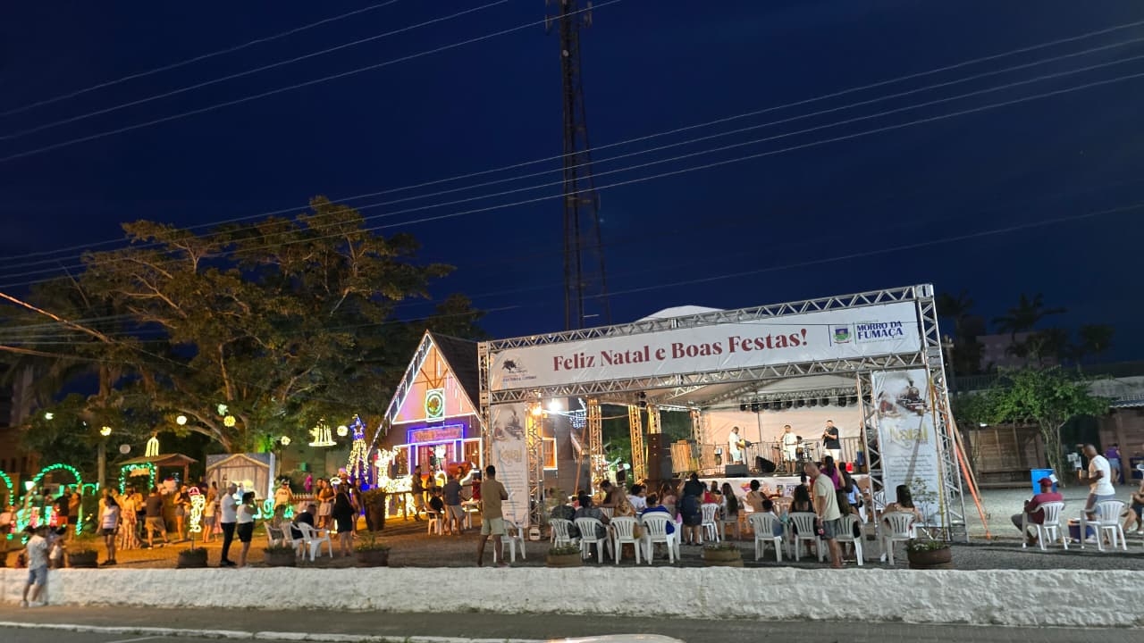 A tarde de sol e calor deste domingo, 21 de dezembro, foi cenário da celebração do encerramento do calendário de eventos culturais de 2025 em Morro da Fumaça, com a realização do Samba na Praça, última ação do projeto Viva MF no ano. O evento ocorreu no palco da Vila Natalina, ao lado da Casa do Papai Noel (Casa da Nonna), reunindo moradores e visitantes, com roda de samba com MW Pagode e show de Bem Jack, com programação que adentrou a noite. O dia contou ainda com brinquedos infláveis para as crianças, sorteio de brindes, exposição de carros antigos do grupo Clássicos MF, além de opções de gastronomia e bebidas de empreendedores fumacenses.