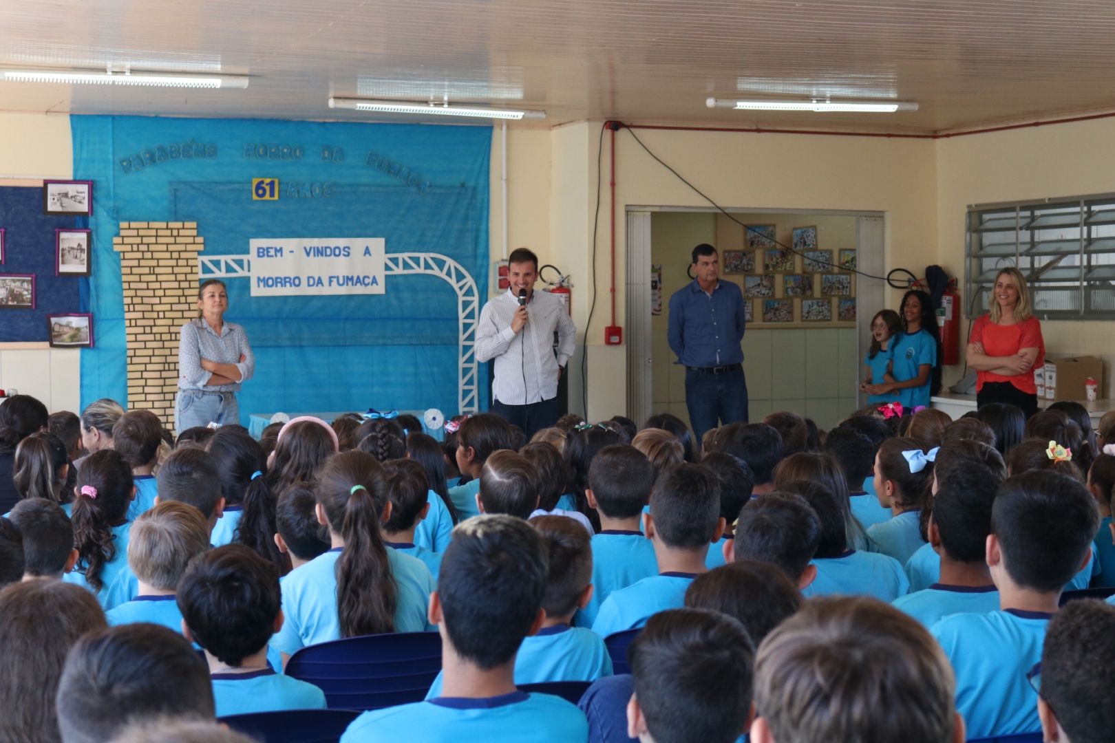 Nesta quarta-feira (17), os alunos da Escola de Ensino Básico Municipal (EEBM) Pietro Maccari e do Centro de Educação Infantil (CEI) Vanolda Gregório Espindola Pagnan tiveram um dia diferente e mais animado. Com direito a bolo e outras atividades, eles comemoram os 61 anos da emancipação político-administrativa de Morro da Fumaça, que é celebrado no dia 20 de maio.