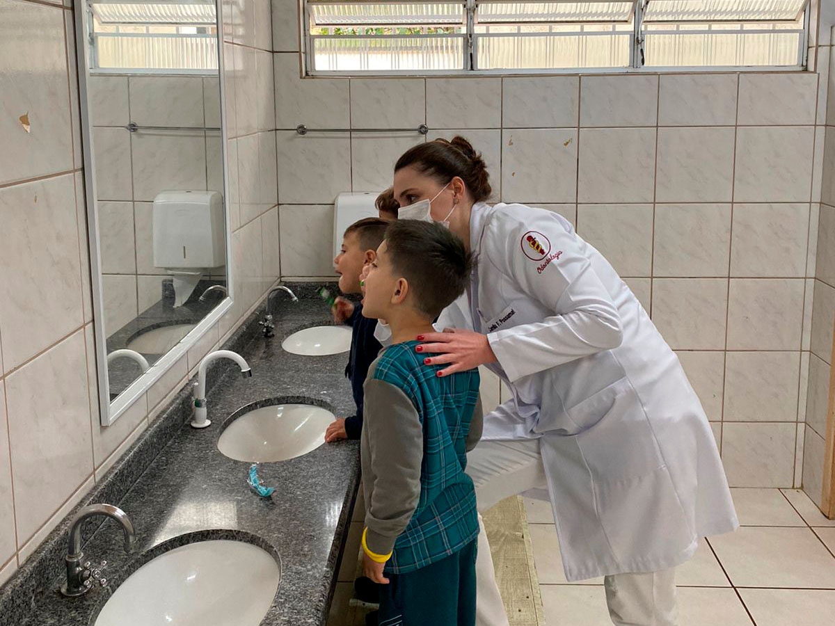 As visitas são realizadas pela cirurgiã dentista e coordenadora da Saúde Bucal, Geovana Frasson Cechinel, com apoio do dentista e auxiliar do bairro ou agentes comunitários. “Durante a visita, nós orientamos os estudantes sobre a importância da saúde bucal, como realizar a higiene oral e avaliamos a dentição. Além disso, entregamos kits com escova infantil, pasta e fio dental e realizamos juntos uma escovação supervisionada”, comenta a coordenadora.