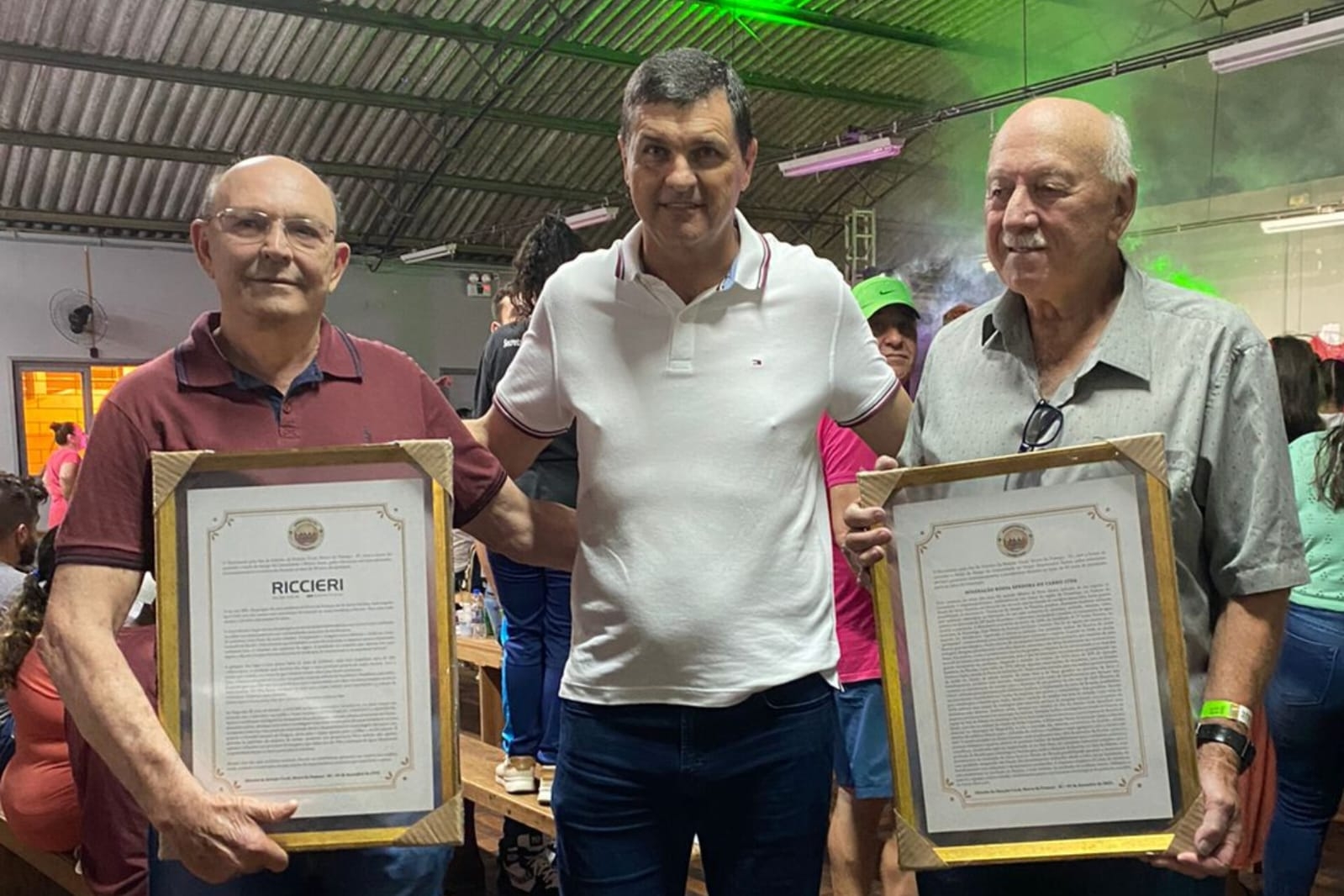 Na ocasião, em nome do Movimento pela Paz do Distrito de Estação Cocal, o prefeito, Noi Coral, realizou a entrega das placas de homenagem aos empresários Antenor de Bona Sartor e Valdir de Costa, ofertadas pela entidade, em reconhecimento aos serviços prestados ao município. “Foi uma pequena homenagem às empresas: Mineração Nossa Senhora do Carmo Ltda e Riccieri pela importância econômica e social dos respectivos empreendimentos para os ramos de mineração e confecção, em nossa cidade”, destaca o coordenador da Comissão Organizadora do evento, Antonio Robson Rodrigues.