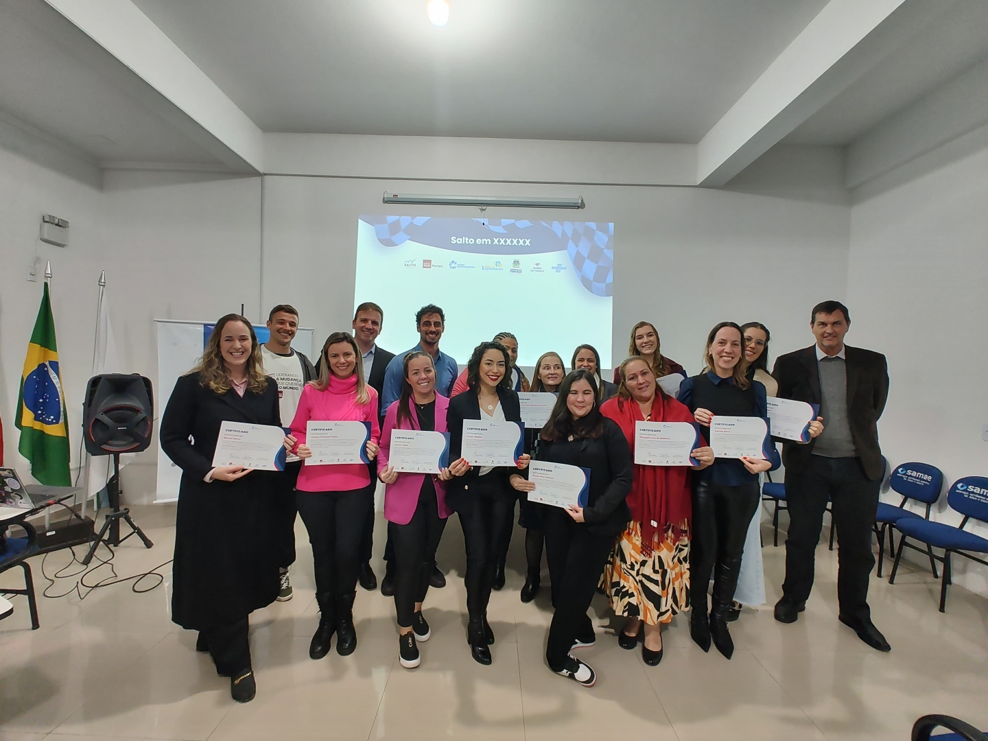 Com sorrisos de satisfação e realização pessoal, 13 microempreendedores de Morro da Fumaça, na noite desta terça-feira, dia 2 de julho, receberam o certificado de conclusão do Programa Salto Aceleradora. Realizada no auditório do Serviço Municipal de Água e Esgoto de Morro da Fumaça (Samae), a cerimônia simboliza um importante passo para o desenvolvimento local, destacando a capacitação e o avanço dos participantes no programa.