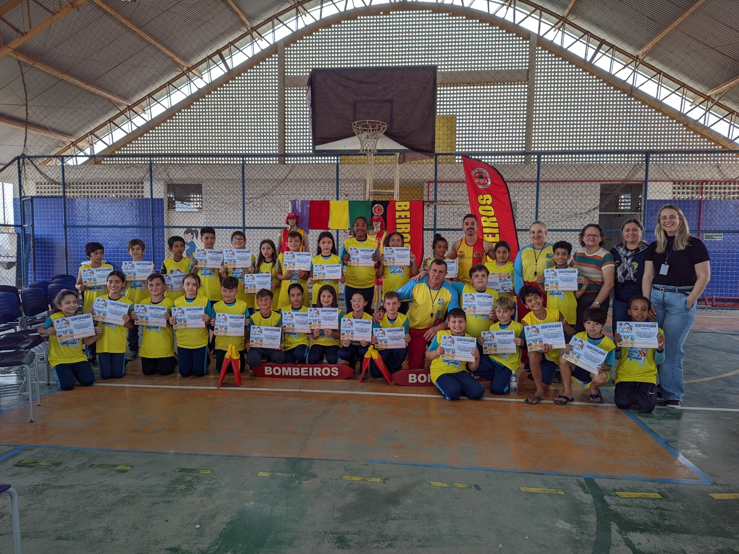 Com muito entusiasmo e vontade de aprender, 100 alunos da Rede Municipal de Ensino fumacense, nos dias 15 e 17, participaram das aulas do Projeto Golfinho, idealizado pelo Corpo de Bombeiros Militar de Santa Catarina (CBMSC), que visa formar crianças para a prevenção de acidentes em ambientes aquáticos.