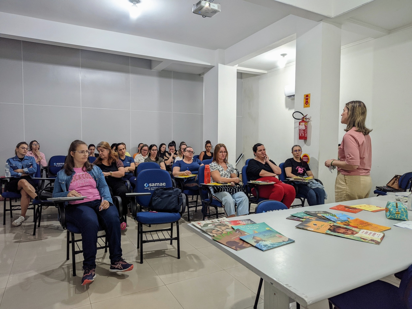 Com o objetivo de aprimorar cada vez mais a metodologia de ensino voltada a leitura e a escrita como agente de cultura dentro das salas de aula, 28 professoras da Rede Municipal de Ensino fumacense participaram, nesta sexta-feira, 18, no auditório do Serviço Municipal de Água e Esgoto de Morro da Fumaça (Samae), do segundo encontro de estudos do projeto Leitura e Escrita na Educação Infantil (LEEI), idealizado pelo Ministério da Educação (MEC).