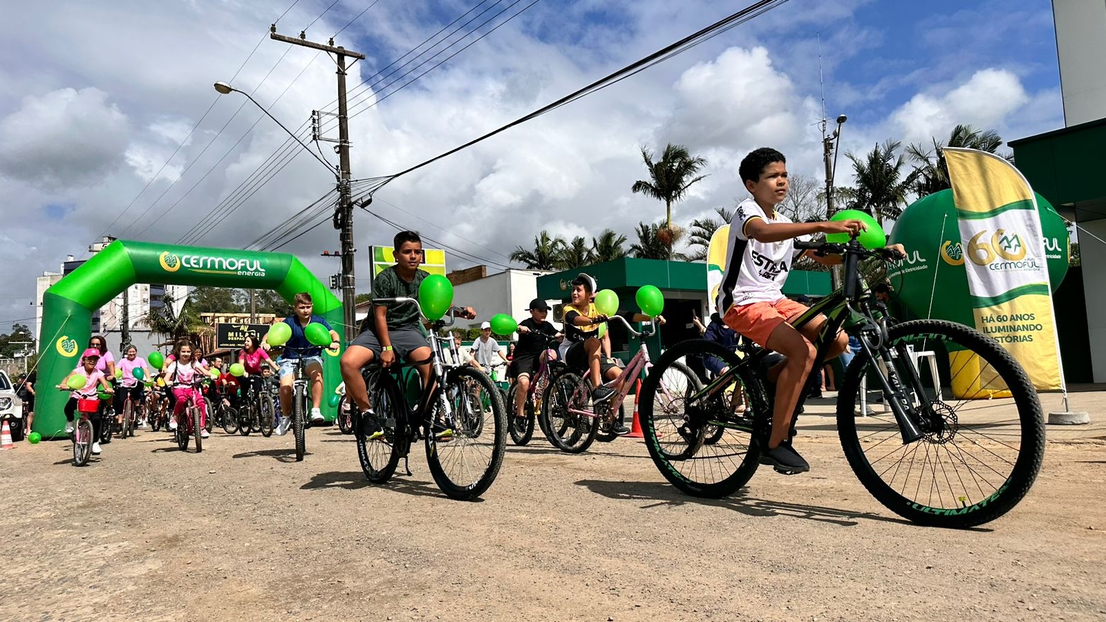 O tradicional Passeio Ciclístico de Morro da Fumaça, promovido pela Cermoful Energia, reuniu dezenas de famílias, consumidores e associados da cooperativa, neste sábado (9), em uma manhã de esporte, lazer e integração comunitária. O evento celebrou os 61 anos da Cermoful, oferecendo aos participantes sorteios de brindes e distribuição de água, suco e picolés. Além disso, uma bicicleta foi sorteada, incentivando ainda mais a prática da atividade física. O próximo Passeio Ciclístico será no dia 23, abrangendo os bairros Presidente Vargas, em Içara, e Vila Rica, em Criciúma.