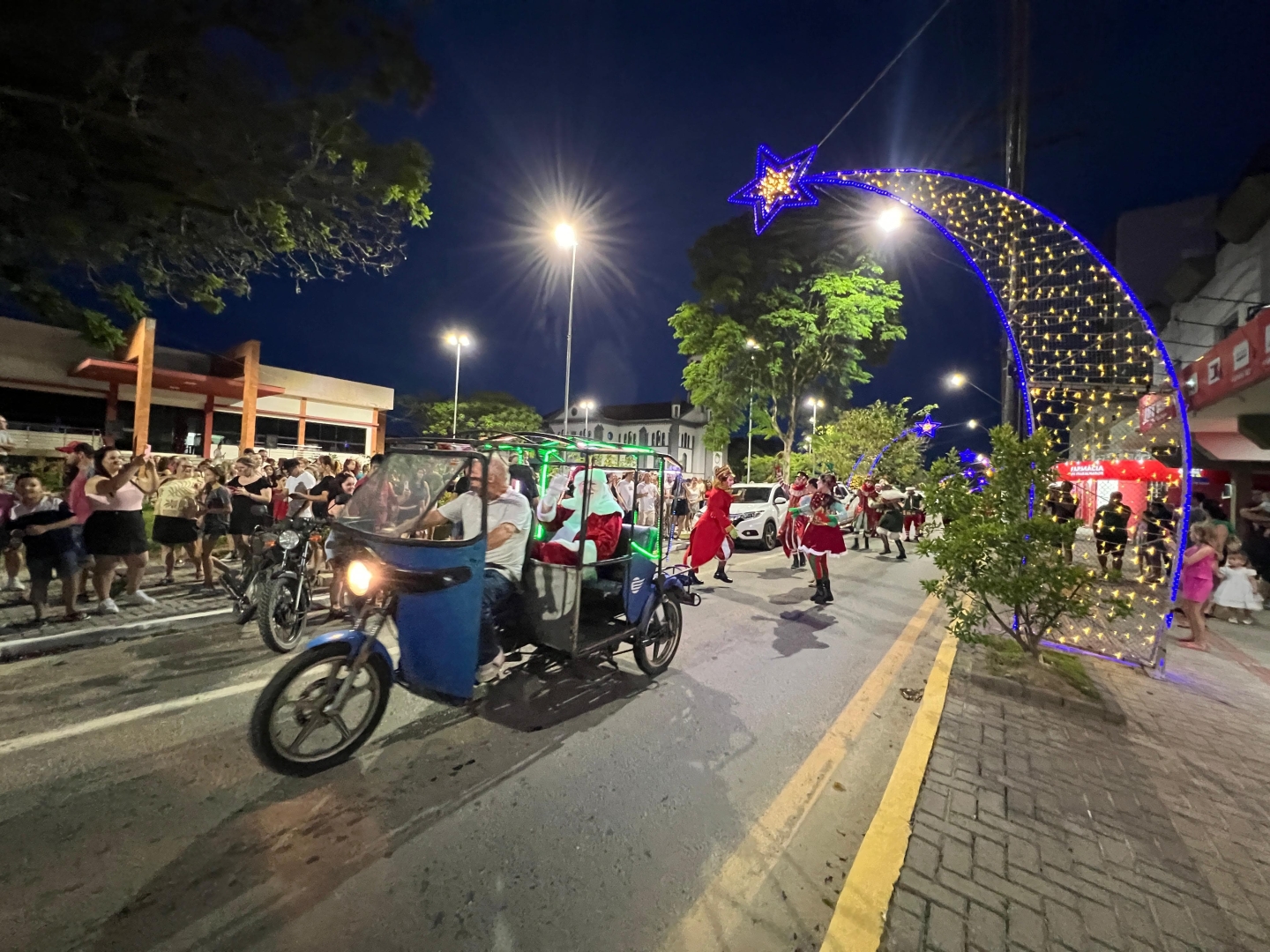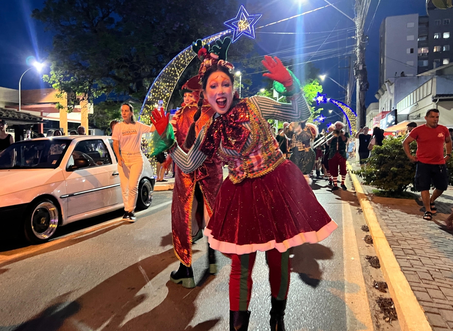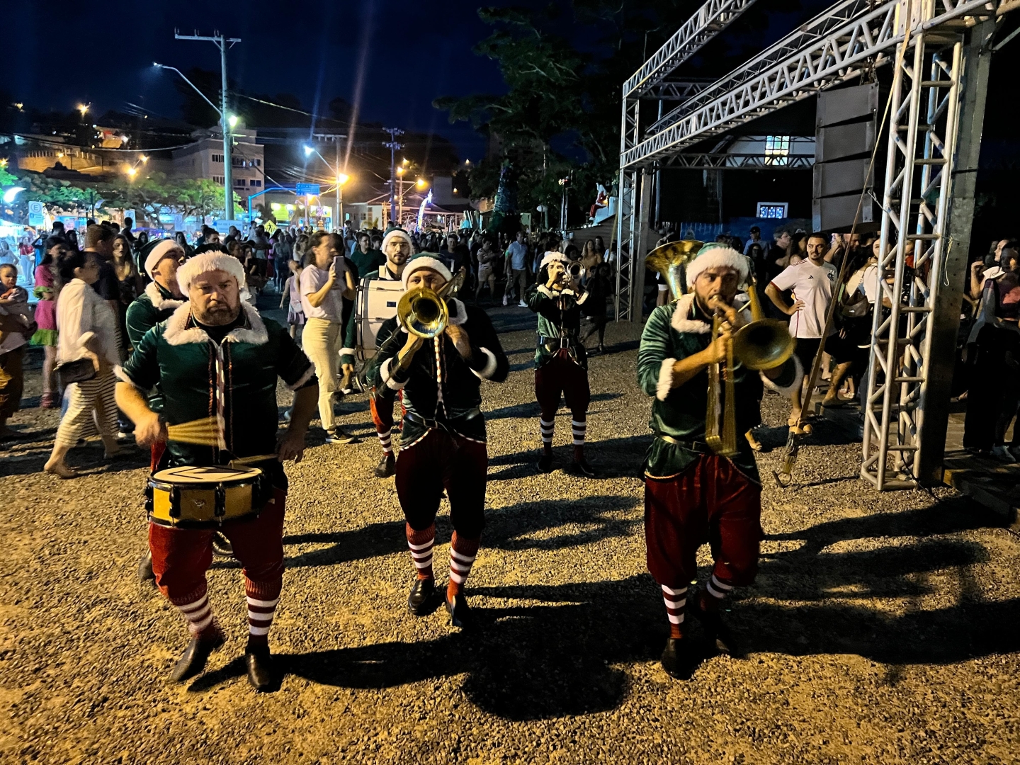 A tradicional noite de abertura da Vila Natalina de Morro da Fumaça, realizada na noite deste domingo, dia 17, proporcionou momentos de emoção e muita alegria aos participantes do evento. Neste ano, o cronograma teve início na Praça da Igreja Matriz São Roque, com a apresentação do Coral Criança Feliz, seguida da performance da Cia Fantasy, que escoltou o veículo do Papai Noel e alegrou a caminhada pela Rua 20 de Maio até o palco principal.
