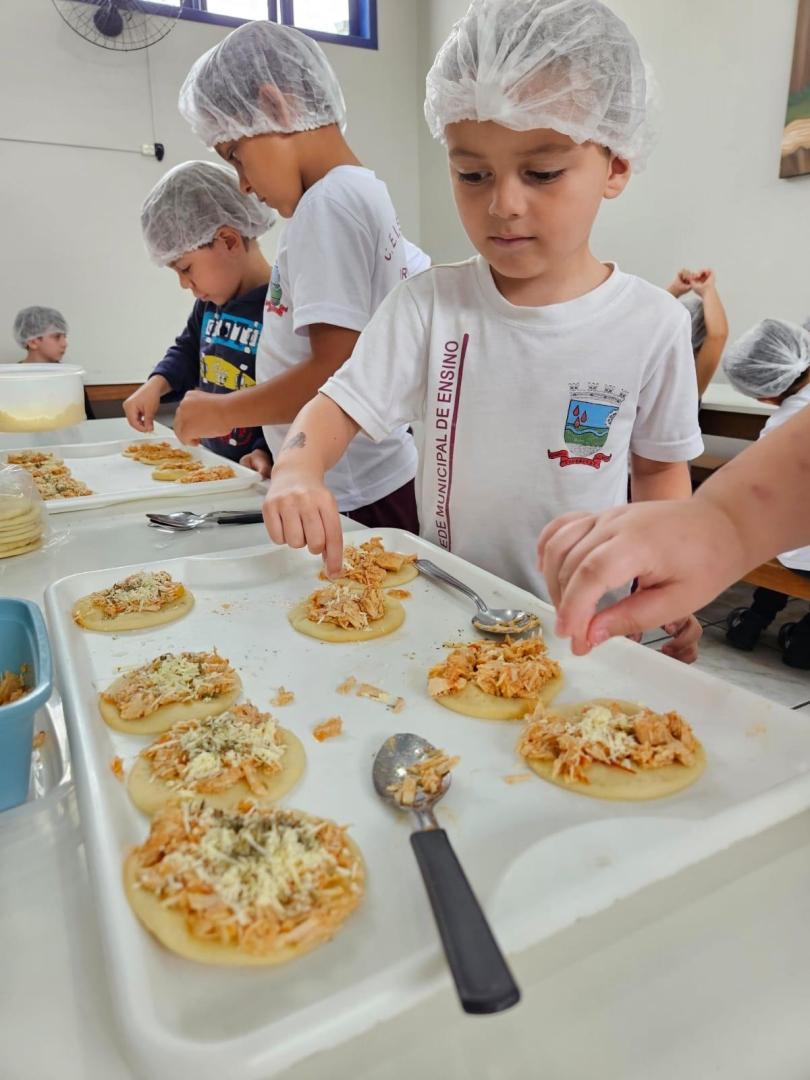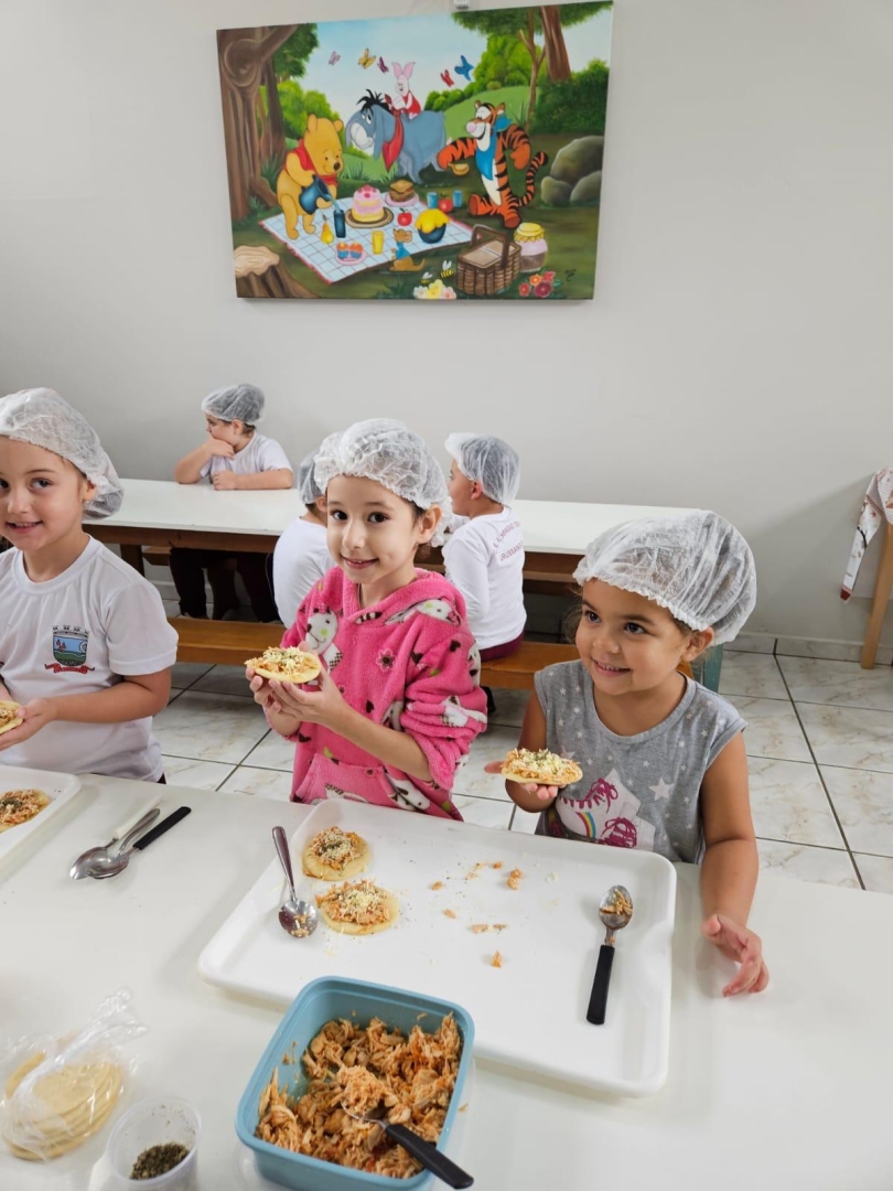 No CEI Sérgio Teixeira, as crianças vivenciaram um momento único nesta segunda-feira, dia 19, de produção culinária e muito aprendizado. Com a ajuda dos professores, elas colocaram a mão na massa para produzir diversas pizzas. A aventura gastronômica foi acompanhada pelos idealizadores do Giardinetto Ristorante, restaurante que se inspira na tradição italiana, o chef Maicol da Rosa Torret e a maître de sala Andreza Frasseto.