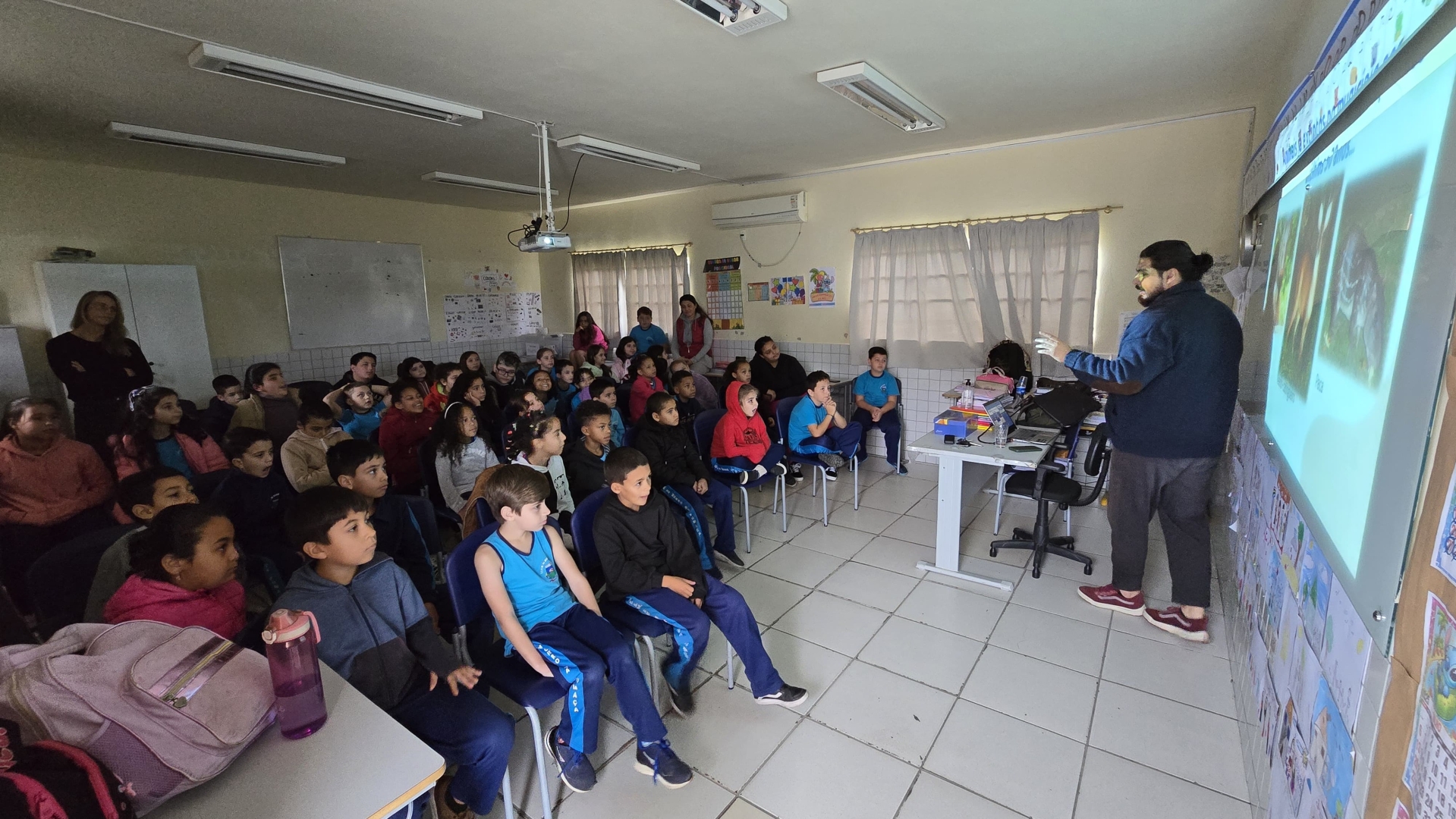 Durante os encontros, o biólogo apresenta um panorama dos animais silvestres presentes na região e no município, vídeos capturados por câmeras trap, armadilhas fotográficas que registram a presença dos animais dentro dos seus habitats, fotos de resgates e outros registros. O destaque das imagens são os mamíferos, como bugio, quati, irara, cachorro-do-mato, cutia, tamanduá, entre outros. “A presença de muitos dos animais apresentados surpreendeu nossos pequenos, que não imaginavam uma fauna tão rica, tão perto deles. A grande interação dos alunos e a veracidade dos registros aproximam ainda mais cada um do tema e despertam o sentimento de preservação ambiental”, pontua o secretário.