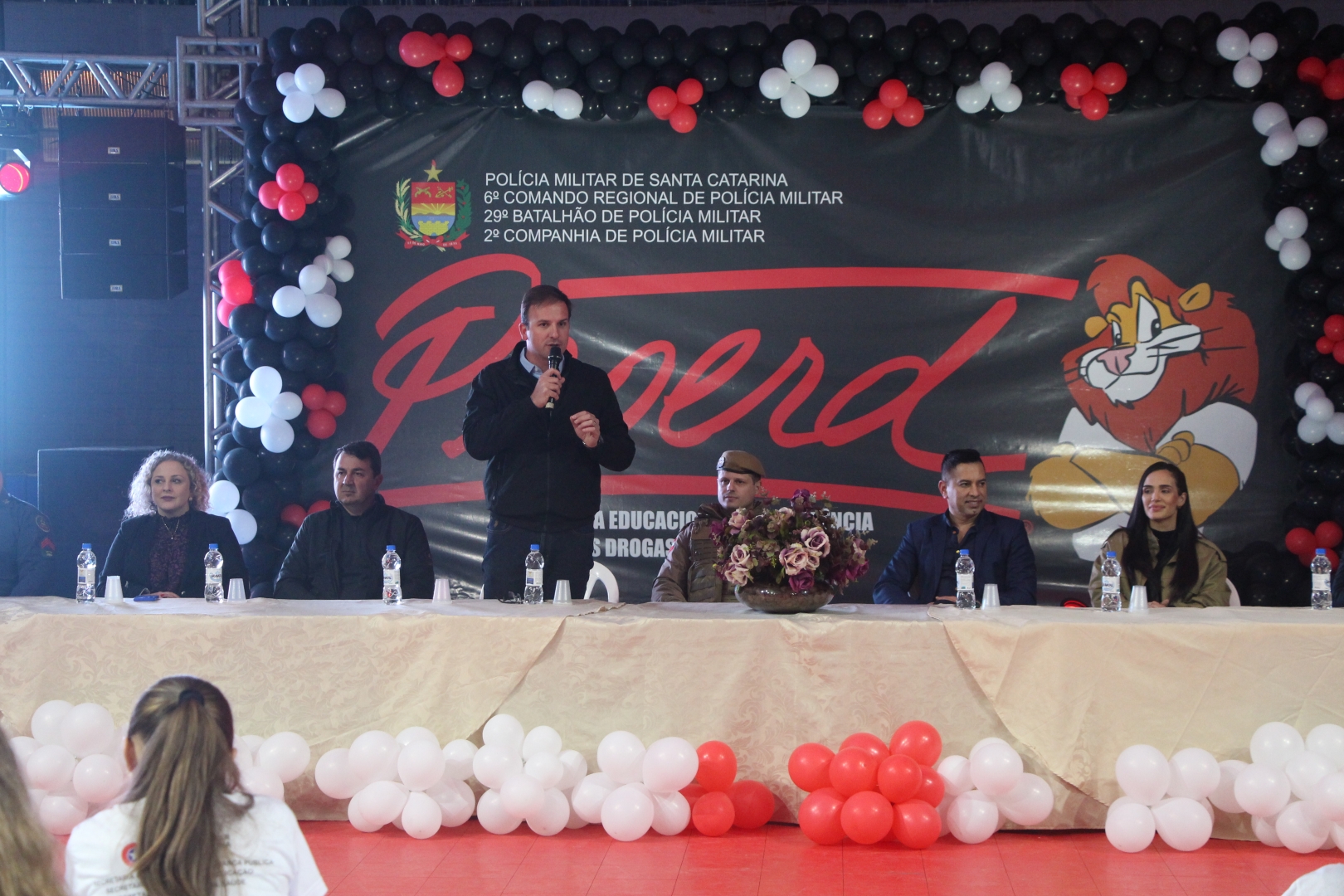 O vice-prefeito do município, Davi Colonetti Pellegrin, também acompanhou a solenidade e deixou sua mensagem aos formandos. “Ver esse ginásio cheio de crianças conscientes, felizes e preparadas para dizer não às drogas nos dá esperança. É o sinal de que estamos no caminho certo, com políticas públicas que valorizam a educação e a prevenção”, completou.