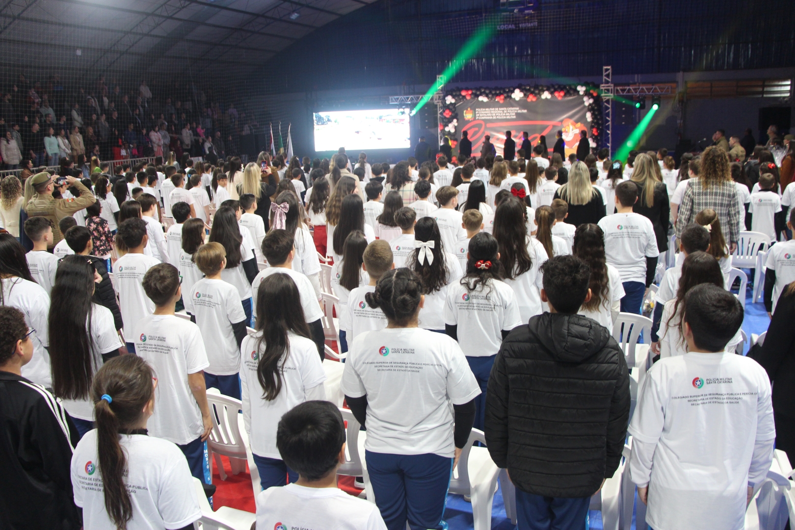 O Ginásio de Esportes Jorge Silva foi tomado por aplausos, emoção e o brilho nos olhosde 290 alunos que concluíram o Programa Educacional de Resistência às Drogas e à Violência (Proerd), em Morro da Fumaça. A cerimônia, realizada na noite de quarta-feira, 9 de julho, reuniu autoridades locais, professores, familiares e representantes da Polícia Militar, além do carismático mascote Daren, que fez a festa com a criançada.