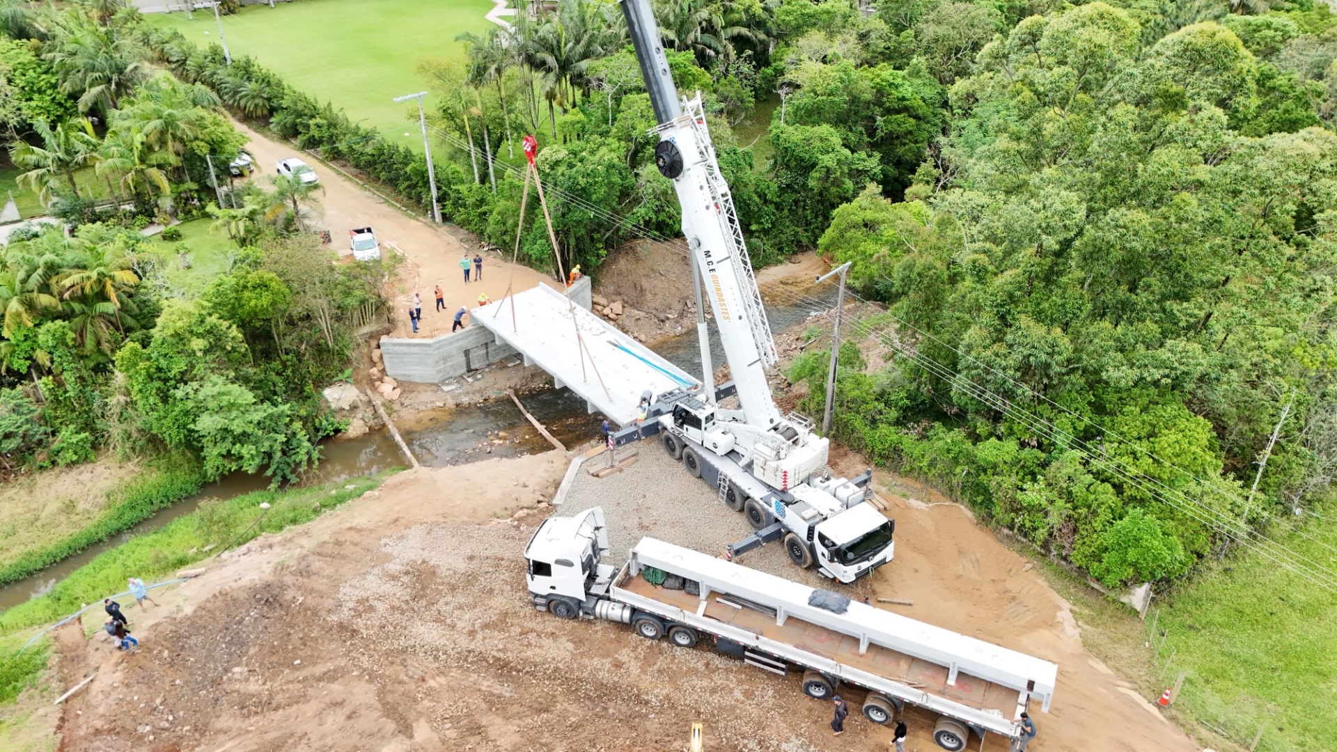 Os Governos de Morro da Fumaça e Içara, nesta terça-feira, 28 de novembro, deram início a mais uma etapa da obra da nova ponte sobre o Rio Ronco D’água com a instalação do kit de transposição que irá conectar os municípios. A estrutura em concreto foi entregue pela Secretaria de Estado da Proteção e Defesa Civil de Santa Catarina, após os municípios viabilizarem a construção das novas cabeceiras.