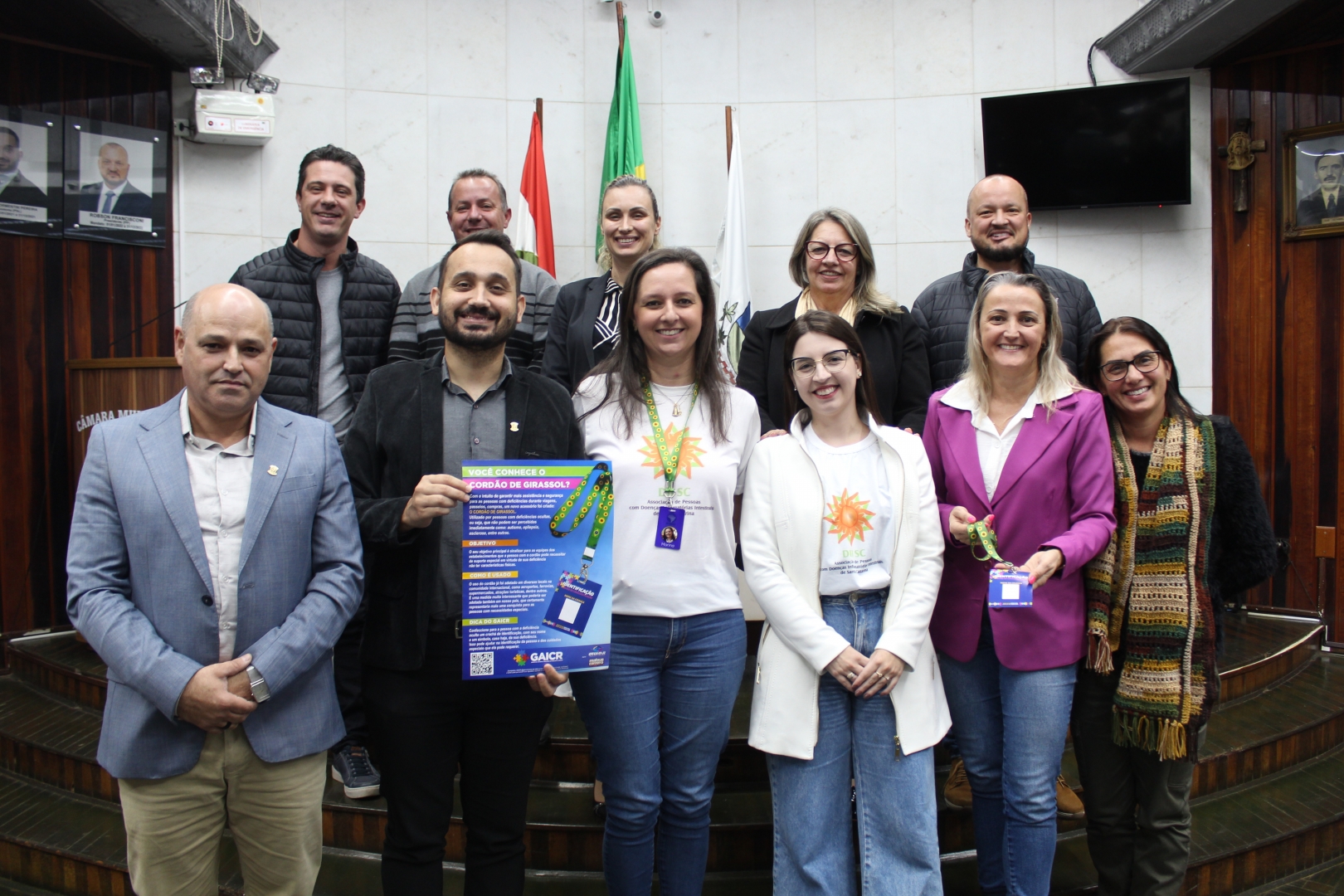 A aquisição do colar é de responsabilidade da própria pessoa que deseja utilizá-lo, uma vez que seu uso é facultativo. Além disso, os estabelecimentos públicos e privados devem orientar seus funcionários e colaboradores quanto ao uso do Colar de Girassol para a identificação das pessoas com deficiências ocultas. A Sessão Ordinária, contou com a participação de Marina Amboni, vice-presidente da Associação de Doenças Intestinais de Santa Catarina, e Gabriela Freta, 1ª secretária.