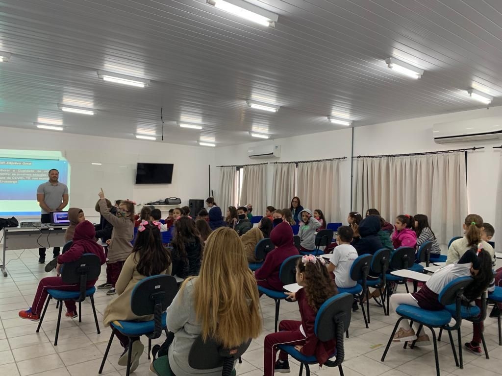 O Programa Saúde na Escola (PSE), realizou na última semana, uma atividade na Escola Lydio De Brida, voltada a prevenção e combate à COVID-19, enfatizando a importância da atividade física regular, como agente atenuante das formas graves da COVID-19. Quem ministrou o ensino, por meio de uma palestra, foi o fisioterapeuta, Ramon Feltrin.