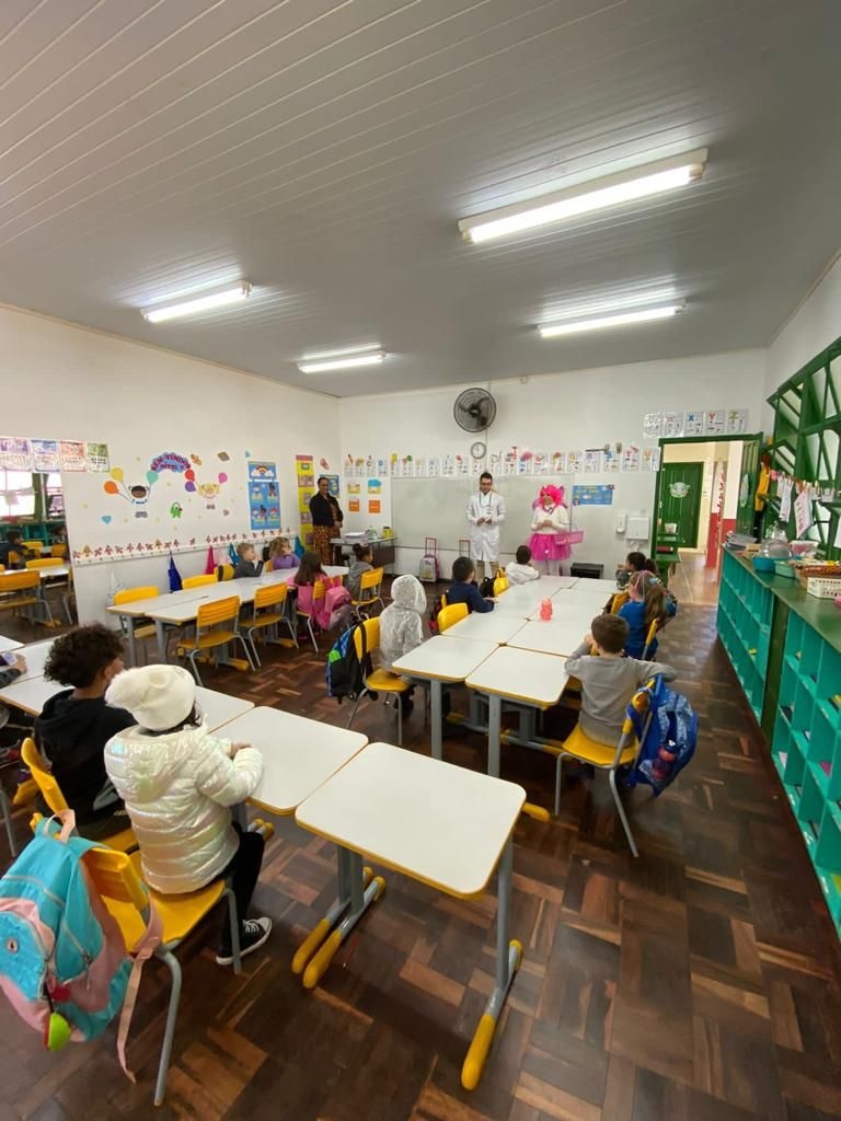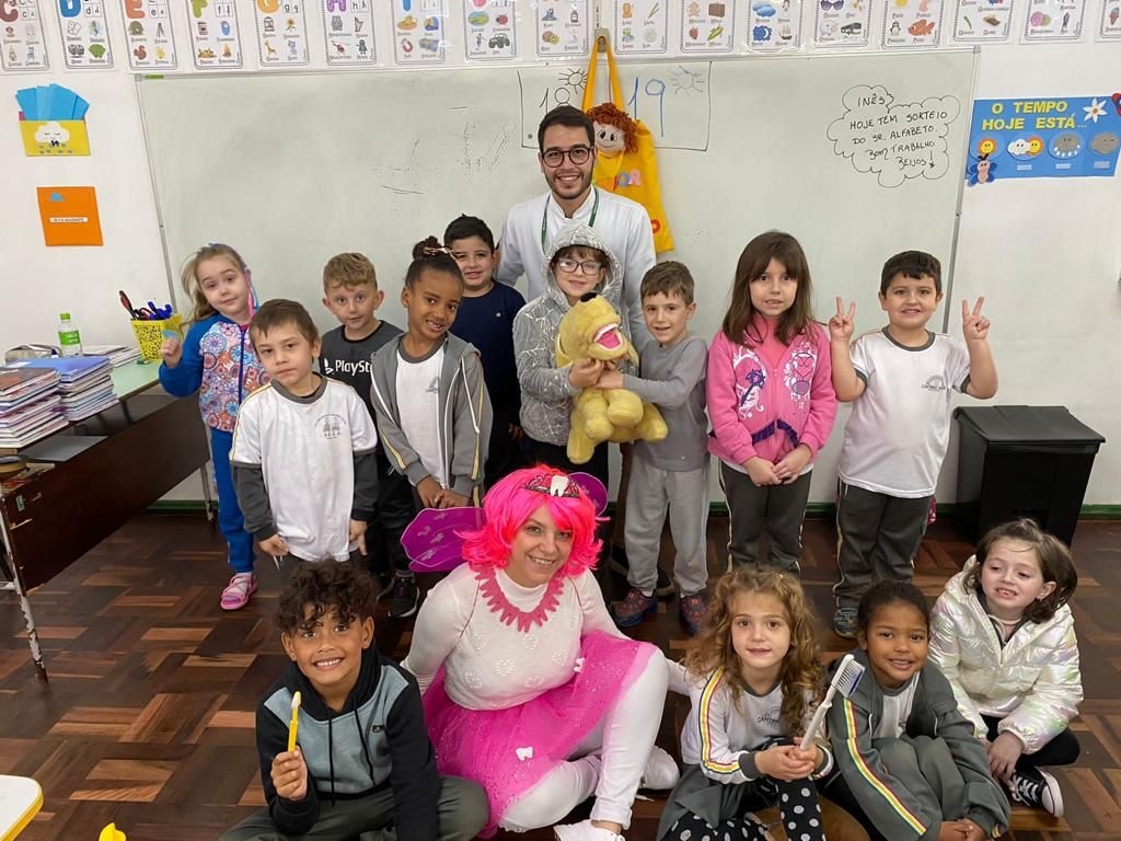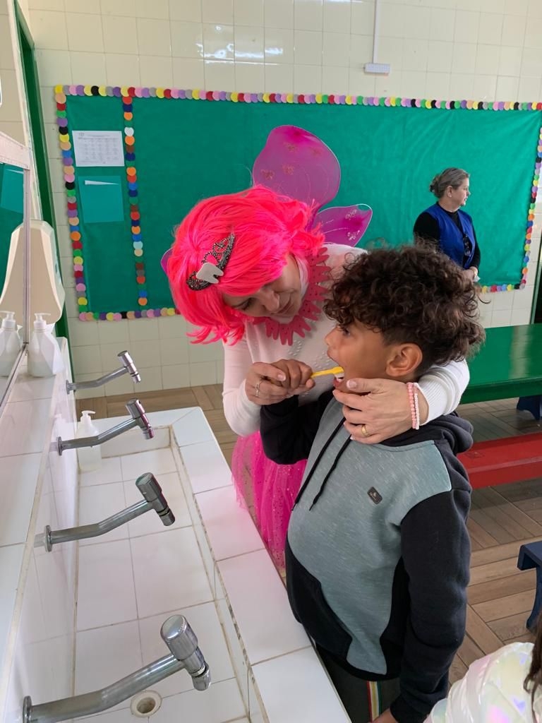 As crianças estão recebendo a visita da fada do dente, da princesa Elsa e, claro, dos profissionais da saúde bucal. O intuito é ensinar os hábitos corretos desde a infância, garantindo dentes fortes e saudáveis na fase adulta.