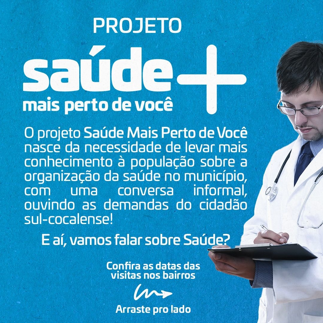 Com o objetivo de levar mais conhecimento à população sobre a organização da saúde no município, o governo municipal, por meio da Secretaria de Saúde, irá lançar o projeto ‘Saúde Mais Perto de Você’. A partir do dia 02 de agosto, serão realizadas reuniões nas comunidades, divididas por área de abrangência das unidades de saúde.