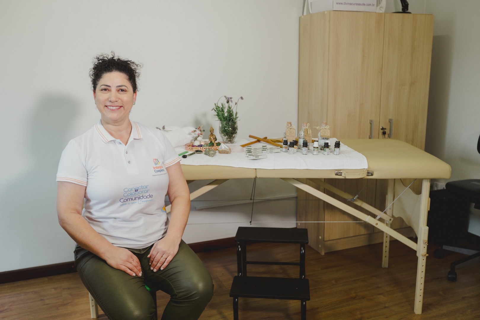 Iniciando sua participação no espaço colaborativo da Coopera como prestadora de serviços de massoterapia, Rita de Cássia Ribeiro Padilha começou oferecendo massagens terapêuticas, que, um pouco mais tarde, deram espaço para o desejo de ensinar. “Quero fazer com que as meninas aprendam o que eu já domino. E mais importante que isso, muitas já passaram a atuar na área, o que me deixa extremamente orgulhosa e com sentimento de dever cumprido”, afirma.