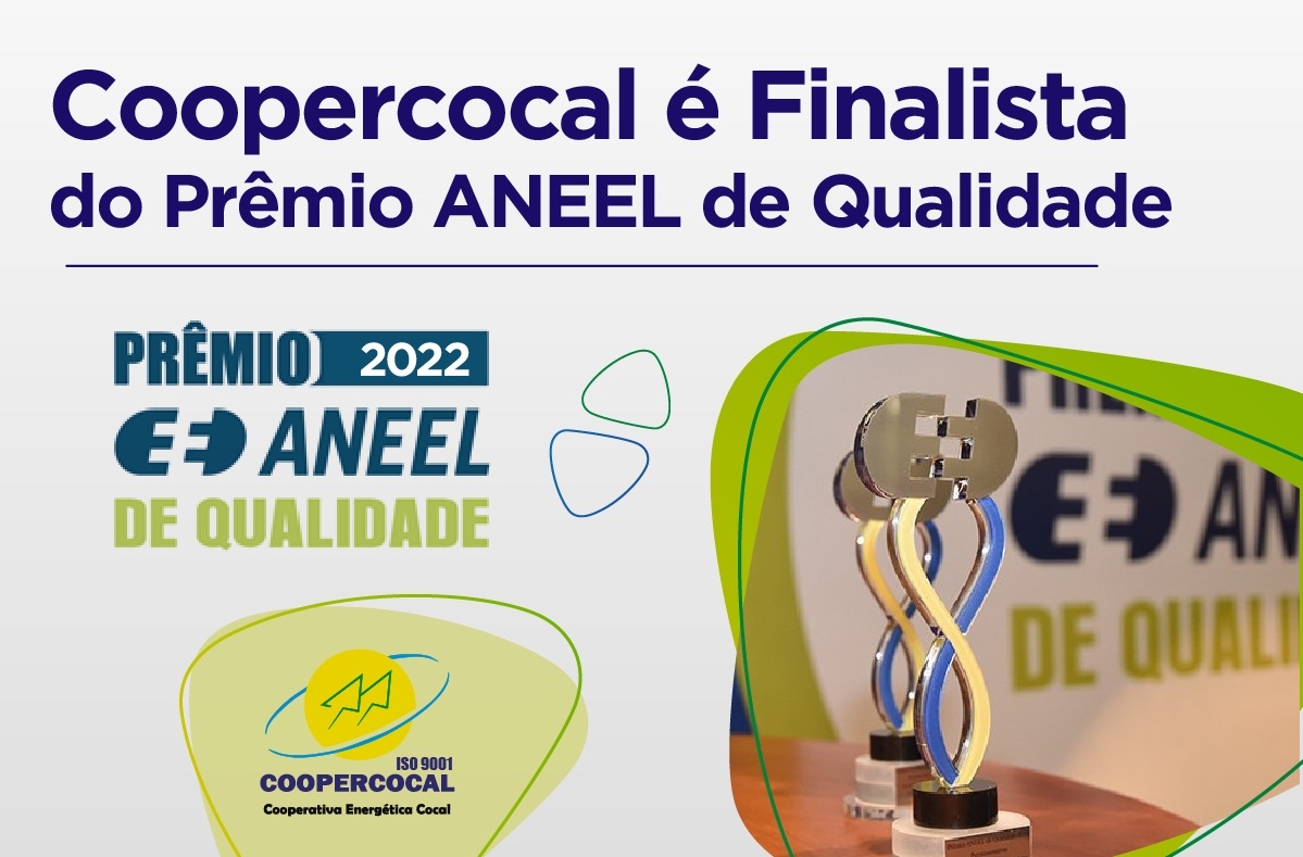 Pelo segundo ano consecutivo a Cooperativa Energética Cocal – COOPERCOCAL é finalista do prêmio Aneel de Qualidade 2022. A cerimônia de divulgação do Prêmio ANEEL de Satisfação do Consumidor, ocorrerá no dia 25 de maio em Brasília. O presidente Altair Lorival de Mélo estará representando toda a família Coopercocal, que concorre ao prêmio na categoria Permissionárias acima de 10 mil unidades consumidoras, junto com as coirmãs Certel de Teutônia – RS e Cermissões de RS.