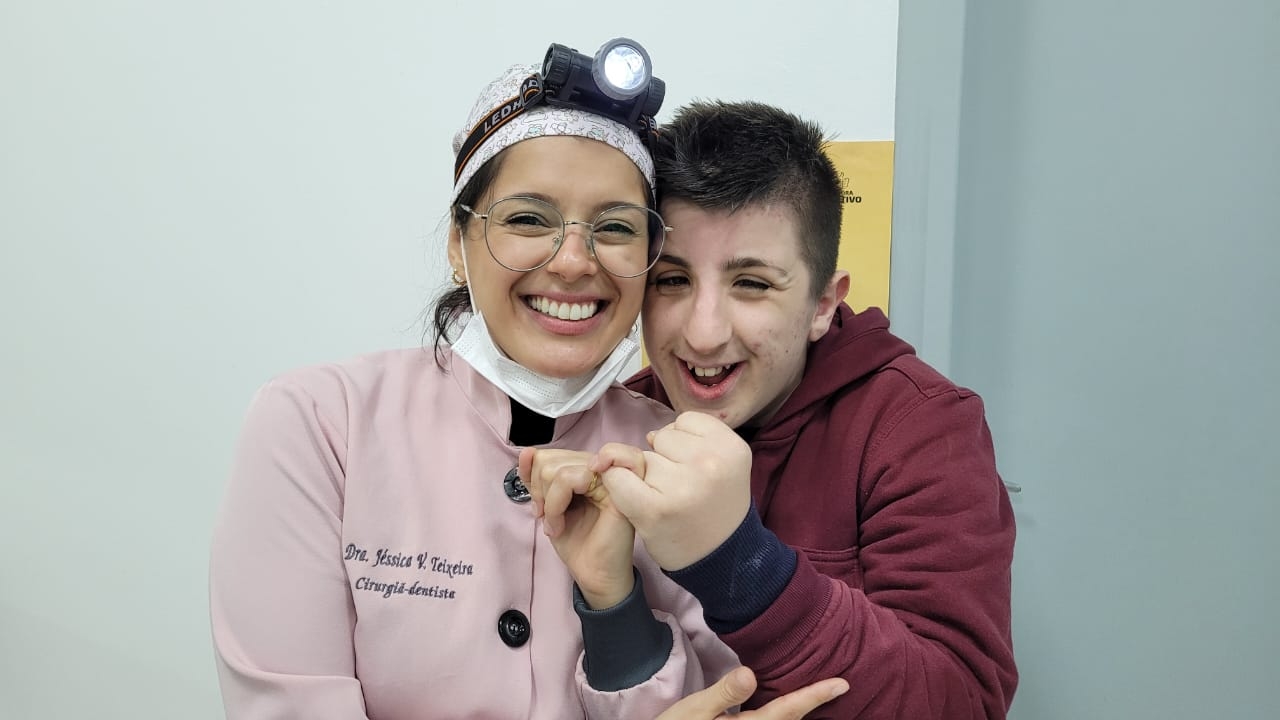 A odontopediatra realiza um trabalho incrível, observando as limitações motoras e de comportamento de cada aluno atendido. Com calma, carinho e atenção, ela orienta, faz brincadeiras para que o paciente se sinta mais à vontade e pouco a pouco entenda a importância daquele cuidado.