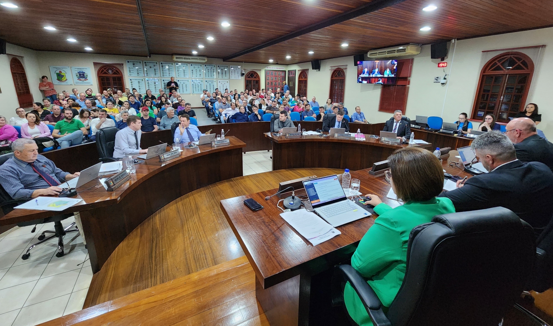 Foi acalorada e com plateia lotada a última sessão na Câmara de Vereadores do município de Nova Veneza, 24, que tratou sobre um empréstimo de R$ 12 milhões junto ao BADESC – Agência de Fomento do Estado de Santa Catarina S/A. A votação terminou em empate, com quatro vereadores se opondo à medida e quatro a favor. O desempate ficou nas mãos do presidente da Casa, Maykon Michels, que negou a autorização para a contratação do empréstimo pelo poder executivo.
