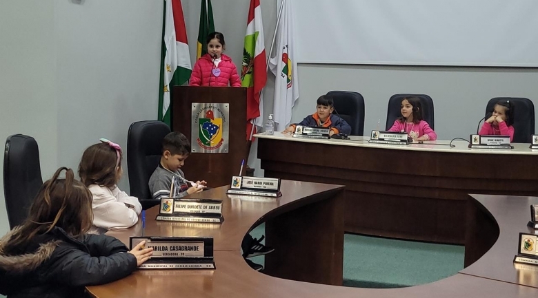 No plenário da Câmara, as crianças aproveitaram o momento para apresentar propostas. “Cada turma escolheu um candidato de prefeito e três para vereador, totalizando quatro candidatos a prefeito e 12 de vereadores. Os mais votados vão representar os alunos nas solicitações para escola”, conta a diretora Jéssica Fontoura Antqueviecz.
