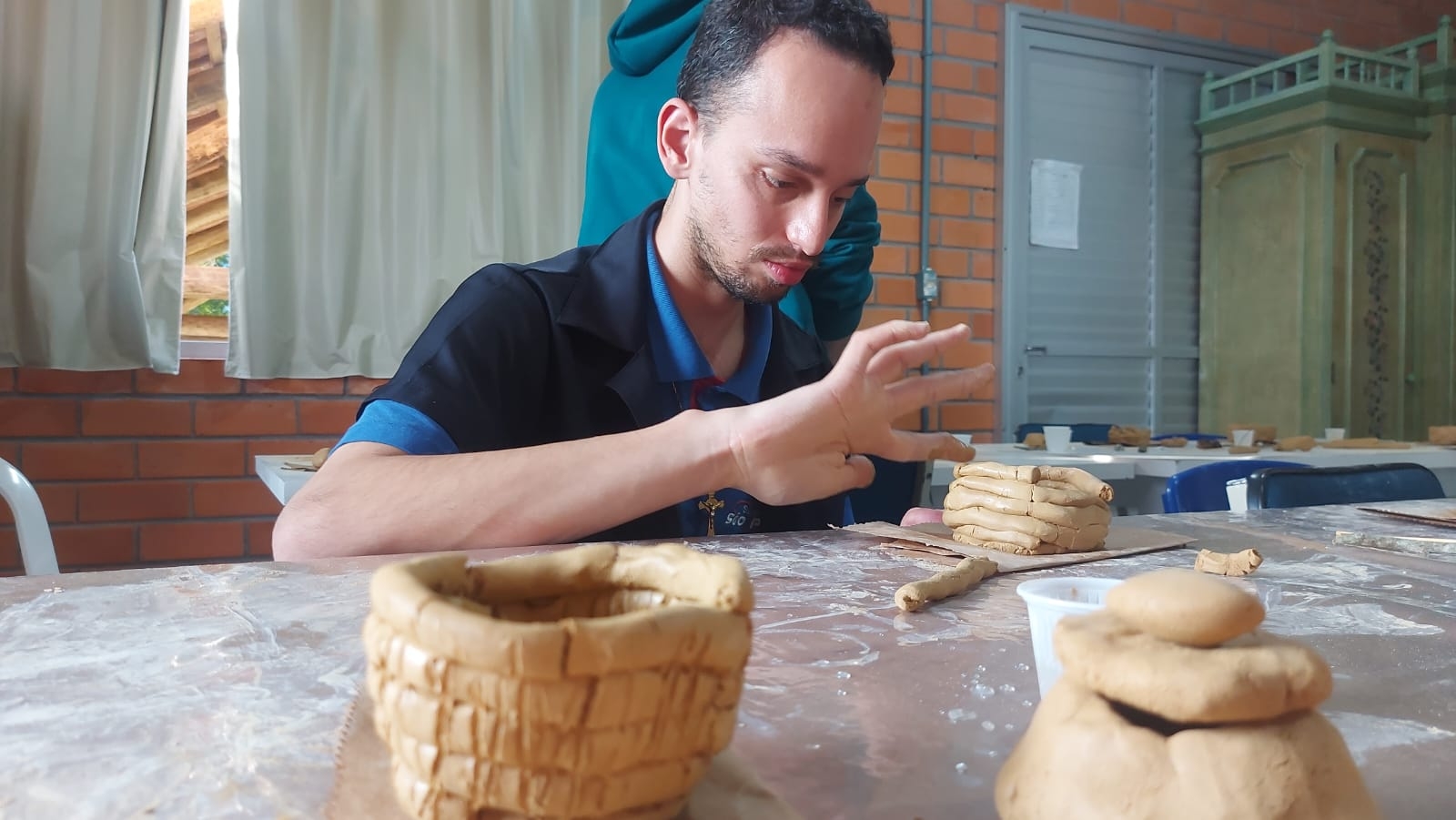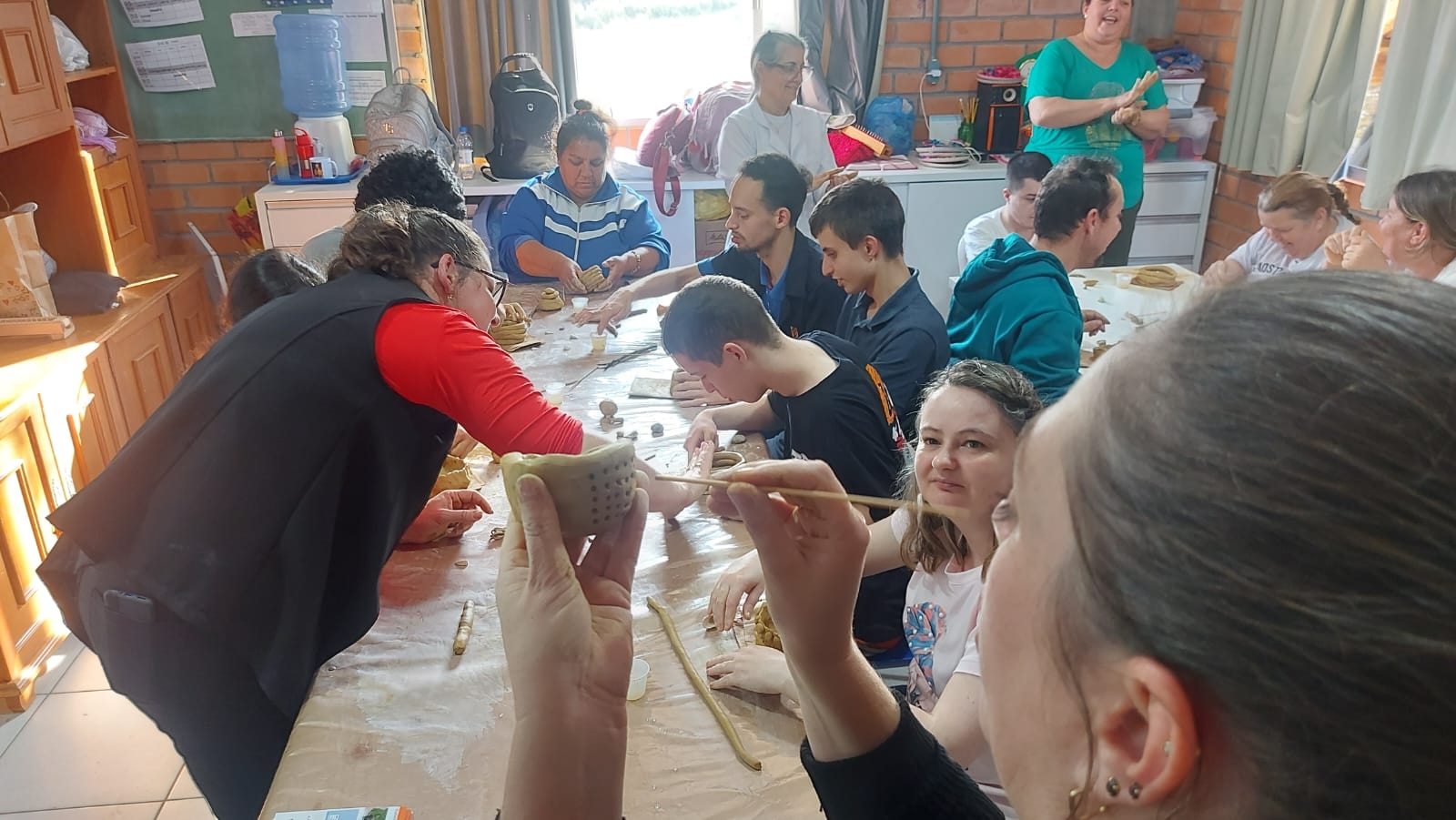 No último dia 24 de julho, a APAE de Cocal do Sul recebeu a segunda ação da proposta cultural Oficina de Cerâmica Indígena. Alunos e professores participaram da atividade, conduzida pela proponente Valdirene Böger Dorigon e por Rosani Hobold Duarte, integrante do projeto, que contou com uma apresentação sobre os grupos indígenas de Santa Catarina, com enfoque na produção da cerâmica indígena guarani, as técnicas de confecção e as técnicas decorativas. Cada participante teve a oportunidade de experimentar na prática este processo, produzindo uma peça com argila.