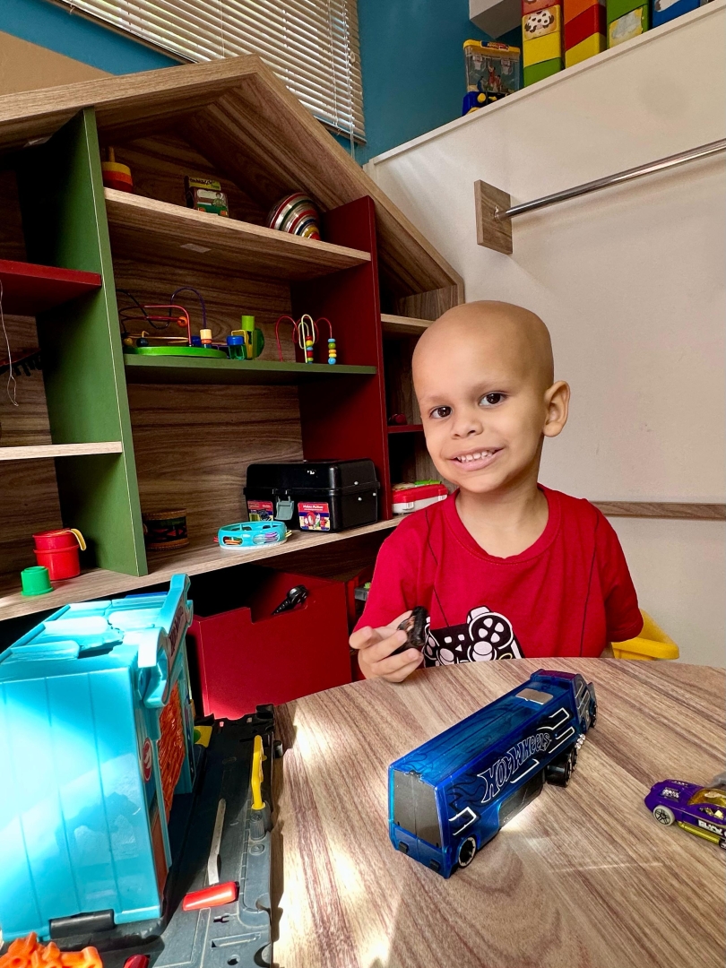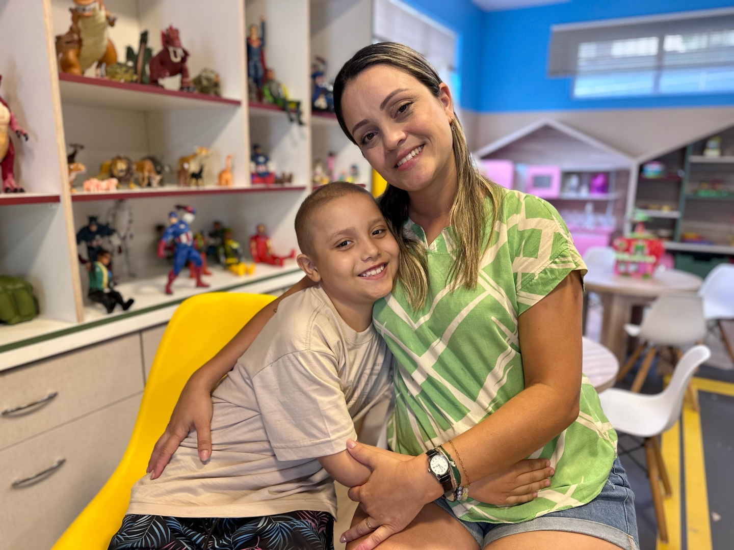 Foi então que Silas enfim recebeu o diagnóstico em dezembro de 2023, precisou ficar internado cerca de um mês no hospital e logo em seguida deu início ao tratamento com quimioterapia. “Sou comerciante e tive que deixar o trabalho de lado para poder me dedicar 24 horas ao meu filho. Nossa rotina mudou completamente. Quando recebi o diagnóstico, foi um baque, fiquei sem chão. Mas aí fui conversando com outras mães, com a equipe médica e fui percebendo que tinha muitas chances de cura”, detalha Francyelli.