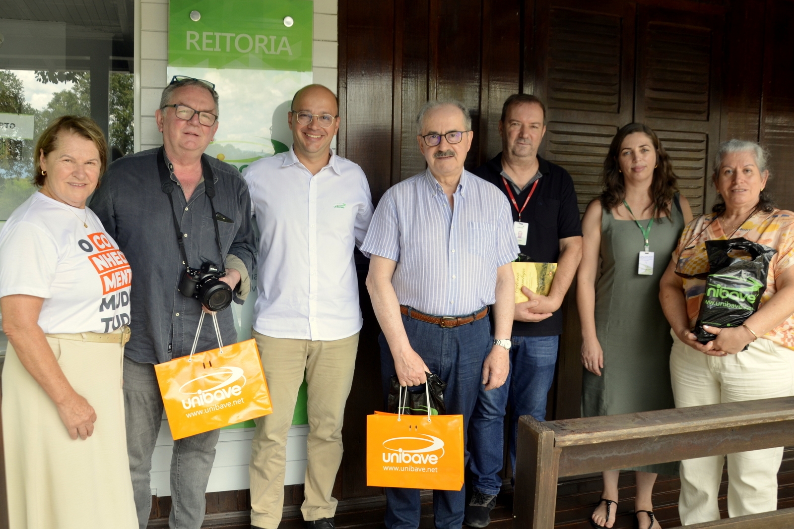 Estiveram presentes recepcionando os visitantes, além do reitor do Unibave e da vice-prefeita de Orleans, Leonete Canever Librelato, os pró-reitores de Administração e Inovação, Dimas Ailton Rocha, e Acadêmico, Leonardo de Paula Martins; a diretora de Cultura, Edina Furlan Rampinelli; a diretora do Museu ao Ar Livre, Valdirene Boger Dorigon; e o museólogo Idemar Ghizzo.