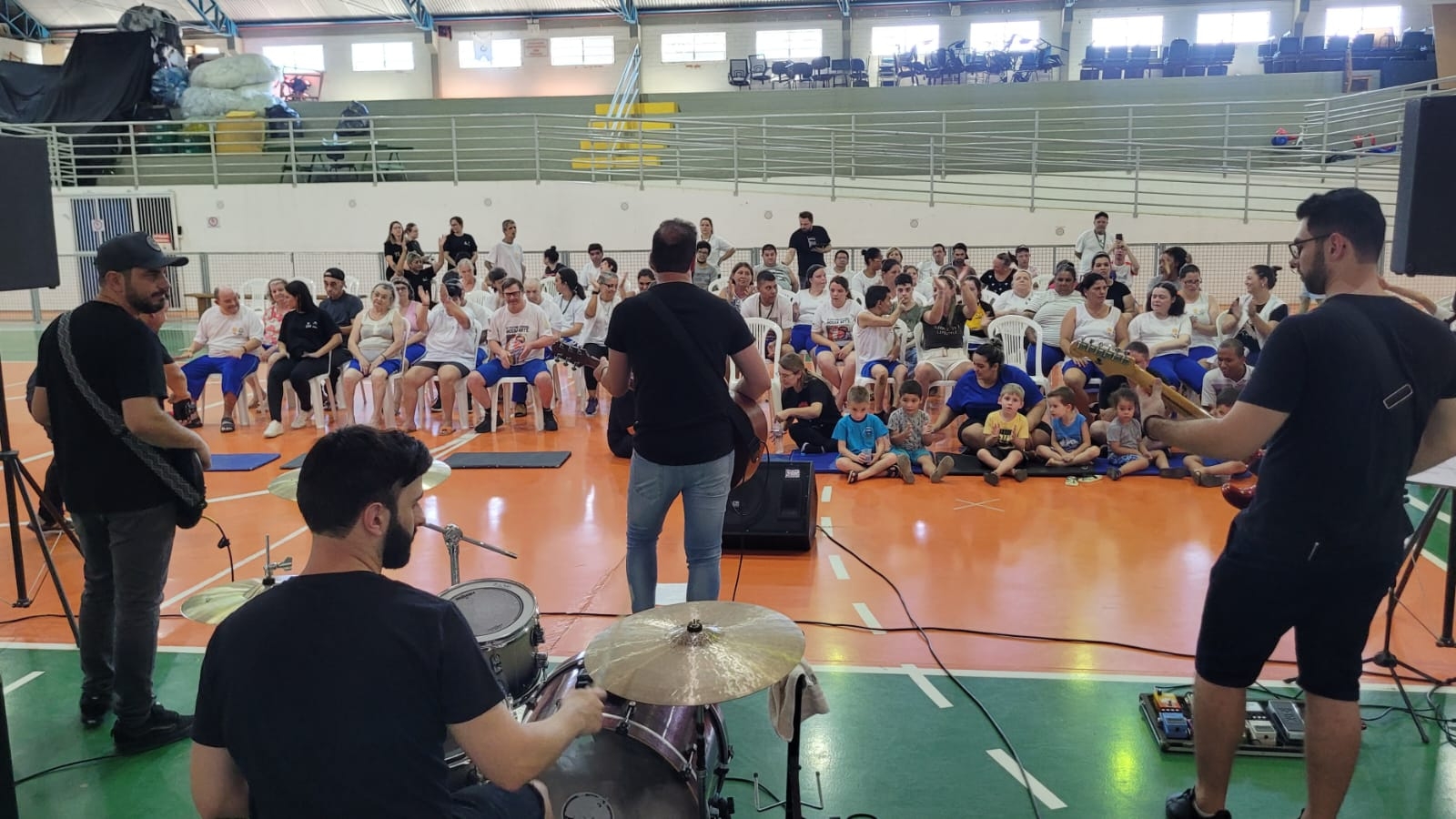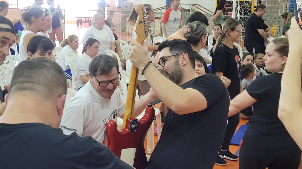A tarde desta segunda-feira (24) foi especial para os alunos da APAE de Cocal do Sul. Com muita animação, eles cantaram, dançaram e pularam ao som do projeto Rockins nas Escolas – A Música como Forma de Transformação, promovido pela banda Rockins.