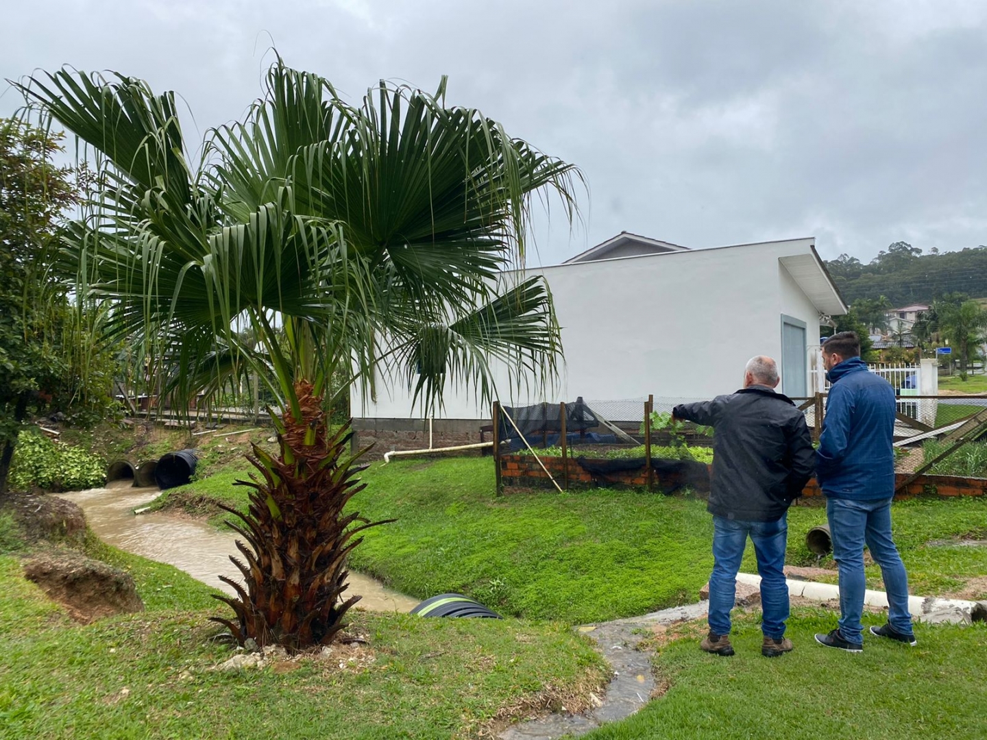 Parte do muro da Escola de Ensino Fundamental Demétrio Bettiol caiu devido à chuva intensa. A Defesa Civil já está providenciando para colocar no local um muro de contenção. Em caso de emergências, as pessoas podem ligar para o número (48) 98834-9105.