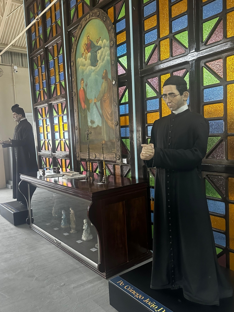 Tem de tudo um pouco: a charrete do padre, que cortava as estradas de chão batido nas décadas passadas; móveis de madeira maciça, que resistiram ao tempo e à poeira das gerações; ferramentas de sapateiros e costureiras, que contam o dia a dia do trabalho artesanal; e até livros com caligrafia antiga, carregados de histórias de fé e de família.