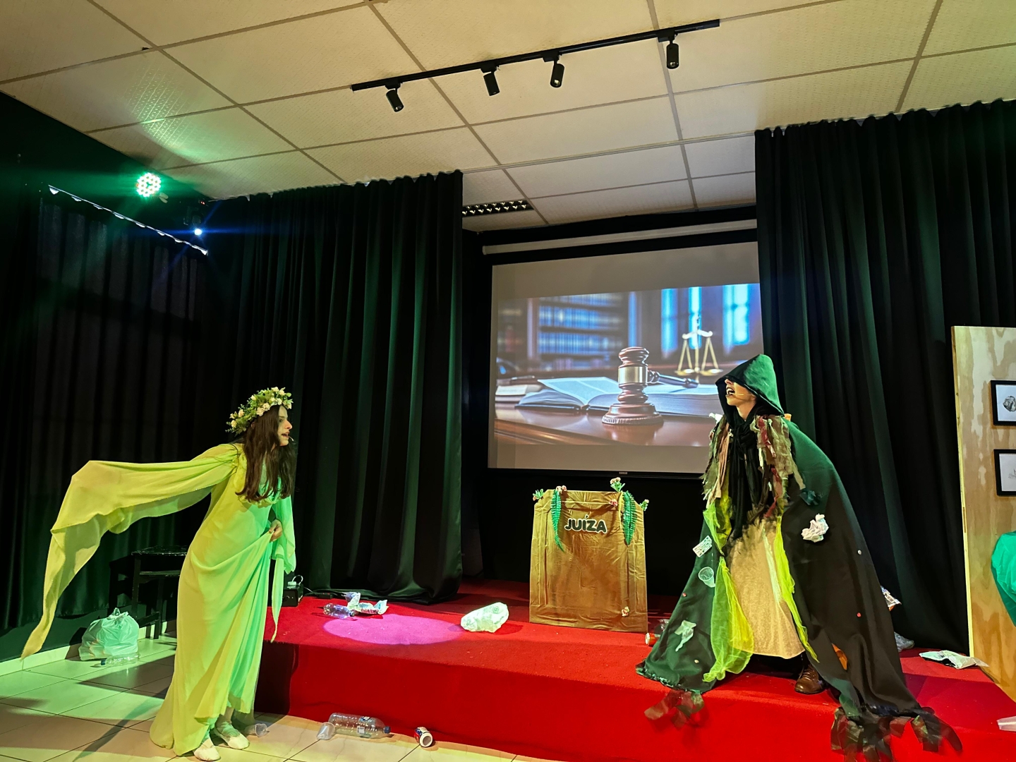 Cocal do Sul deu início nesta segunda-feira (2) à Semana do Meio Ambiente com um teatro que provocou reflexão e chamou a atenção de estudantes e autoridades. O palco, montado no Teatro Jônatas João, trouxe um cenário inusitado: lixo espalhado e um púlpito de julgamento, onde uma juíza julgava a natureza e a poluição de forma divertida e crítica.