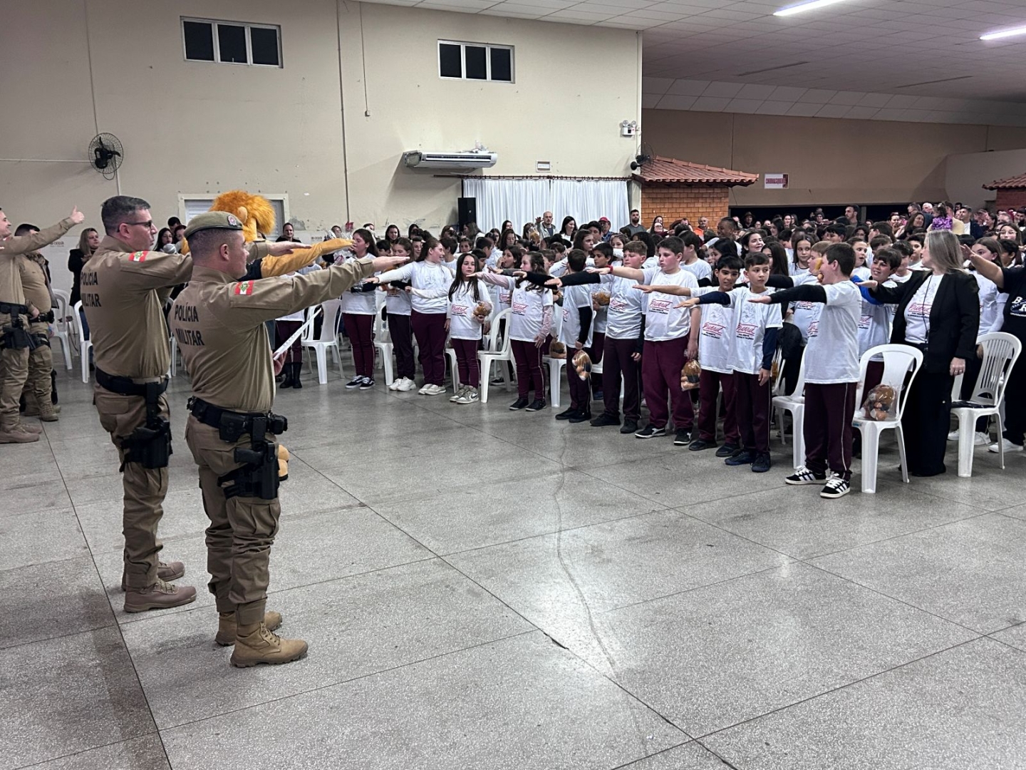 Pais, professores e autoridades lotaram o salão paroquial da Igreja Matriz para prestigiar o evento. “Passei 30 anos da minha vida na escola e vi de perto o quanto o Proerd é significativo na vida das crianças. Que esse programa continue por muitos anos ensinando nossos alunos a dizer 'não' a tudo que possa prejudicar sua caminhada. Parabéns a todos os envolvidos com o Proerd. Que possamos ter uma sociedade mais saudável e livre de qualquer tipo de dependência", declara a prefeita Stela de Agostin Talamini.