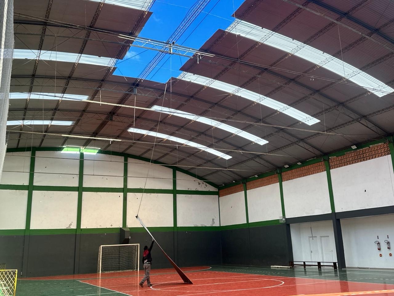 A reforma inclui a substituição das telhas da cobertura existente, com valor aproximado de R$ 75 mil, e a pintura interna das paredes e da quadra, que custará cerca de R$ 74 mil. O investimento total é de aproximadamente R$ 149 mil.